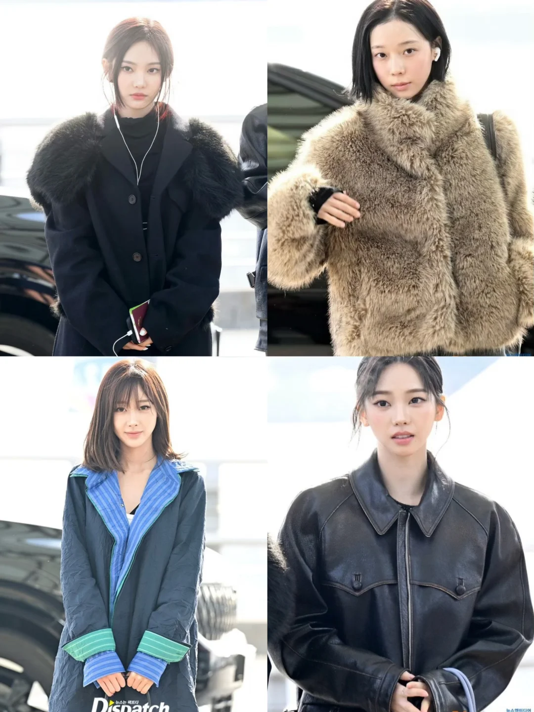 每次看aespa的机场图都在感叹:她们怎么每套都这么会穿! 整理了4套不同风格的穿搭思路,直接承包你一周的出街造型👇 🔹 活力辣妹风:拼色长款棉服+下衣失踪,彩色撞色点亮冬日沉闷,甜酷感拉满。 🔹 慵懒贵气风:浅棕皮草外套+破洞牛仔裤,松弛又显贵,韩剧财阀女主既视感。 🔹 极简酷飒风:黑色毛领大衣+all black内搭,低调又气场全开,通勤也适配。 🔹 复古甜酷风:黑色皮衣+短裤长靴,经典永不过时,普通人照搬也能赢很大!