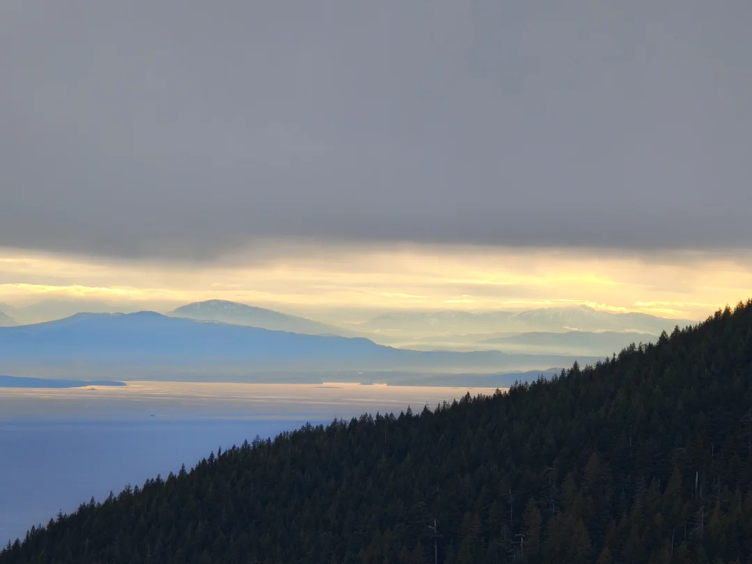在Cypress Mountain徒步偶遇的落日,我喜欢这份安静的美,不张扬,不热烈,却最抚人心...... 闺女在山里找到美丽的冰晶,特意跑来让我拍照,晶莹剔透,冬日里最好的分享。 🚩 Bowen Lookout Trail,徒步里程6KM,爬升200M