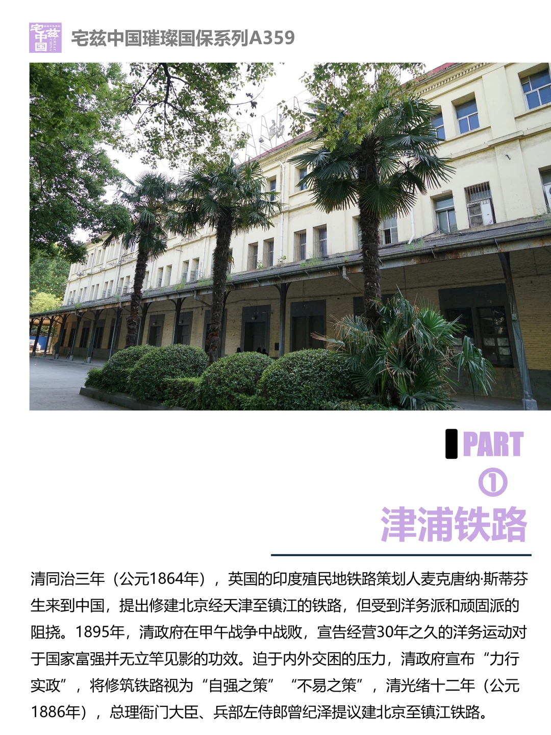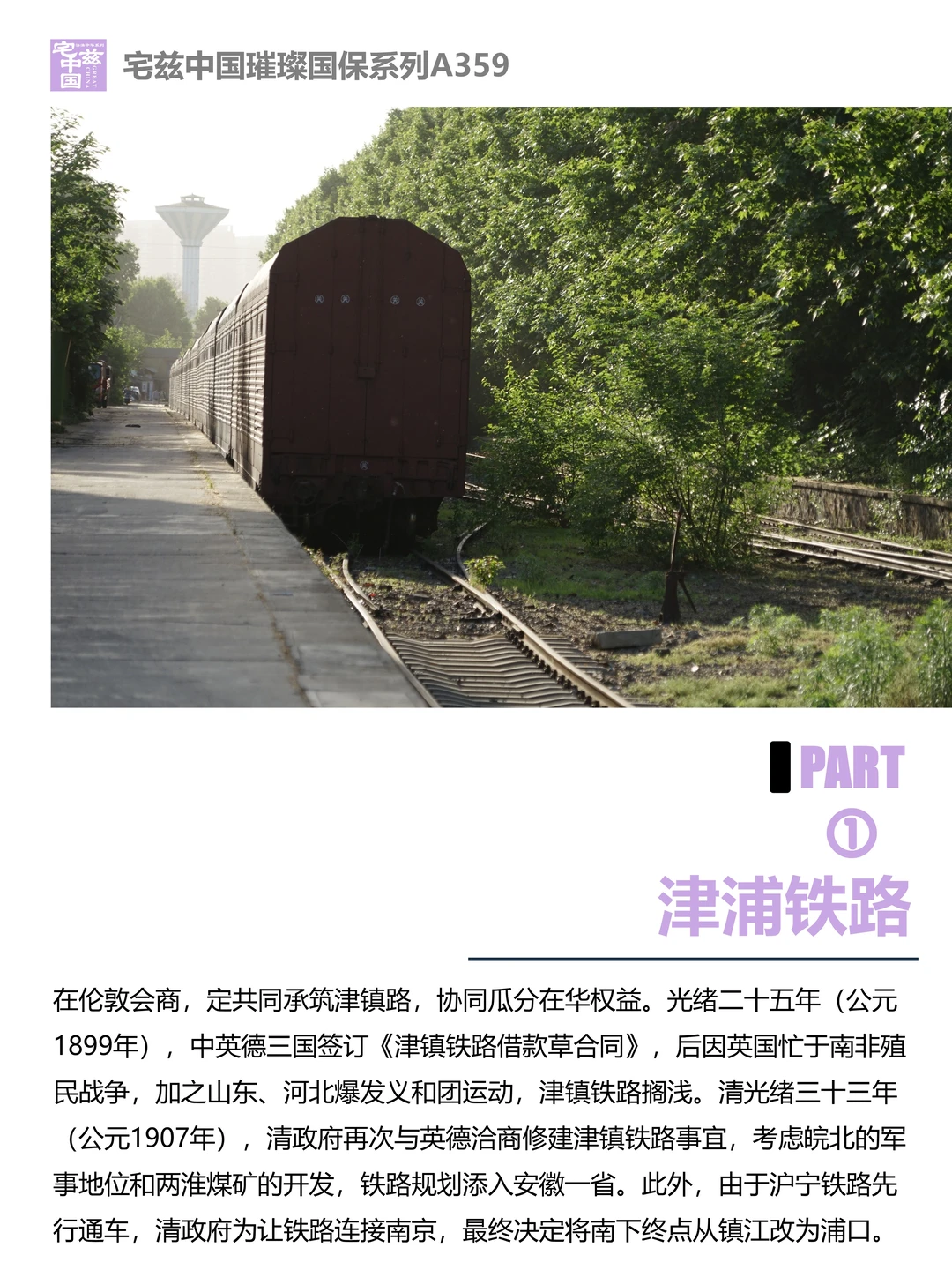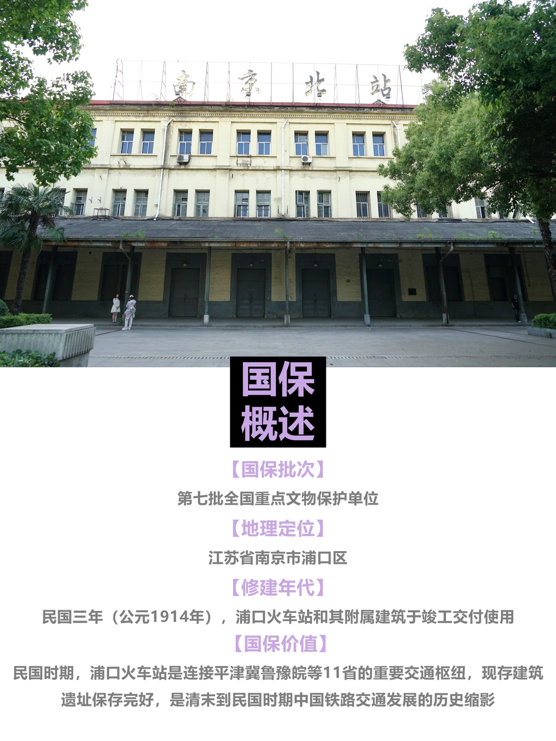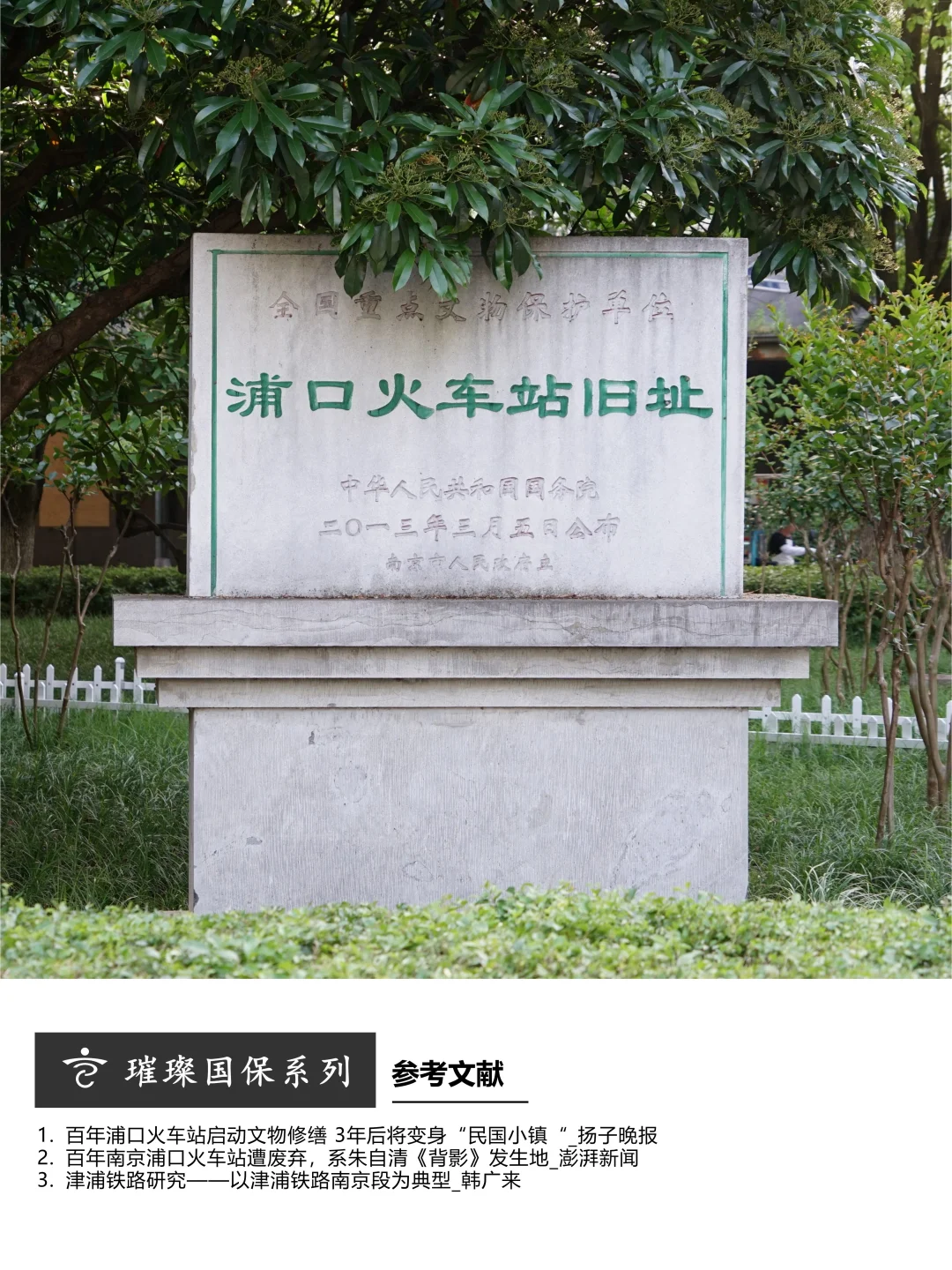 津浦铁路是晚清至民国时期重要的南北交通动脉,其南端起点为浦口火车站。1914年,浦口火车站和其附属建筑竣工,浦口火车站成为连接河北、山东、安徽、江苏等11省的交通枢纽,朱自清的《背影》描写的就是浦口火车站。1929年,孙中山先生灵柩通过津浦铁路运抵浦口火车站,并在这里稍作停靠。浦口火车站遗存建筑主要包括主体大楼、中山停灵台、贵宾楼、电报房等四处,其余设施还包括电厂、高级职工住宅楼、火车轮渡桥、机车仓库等。