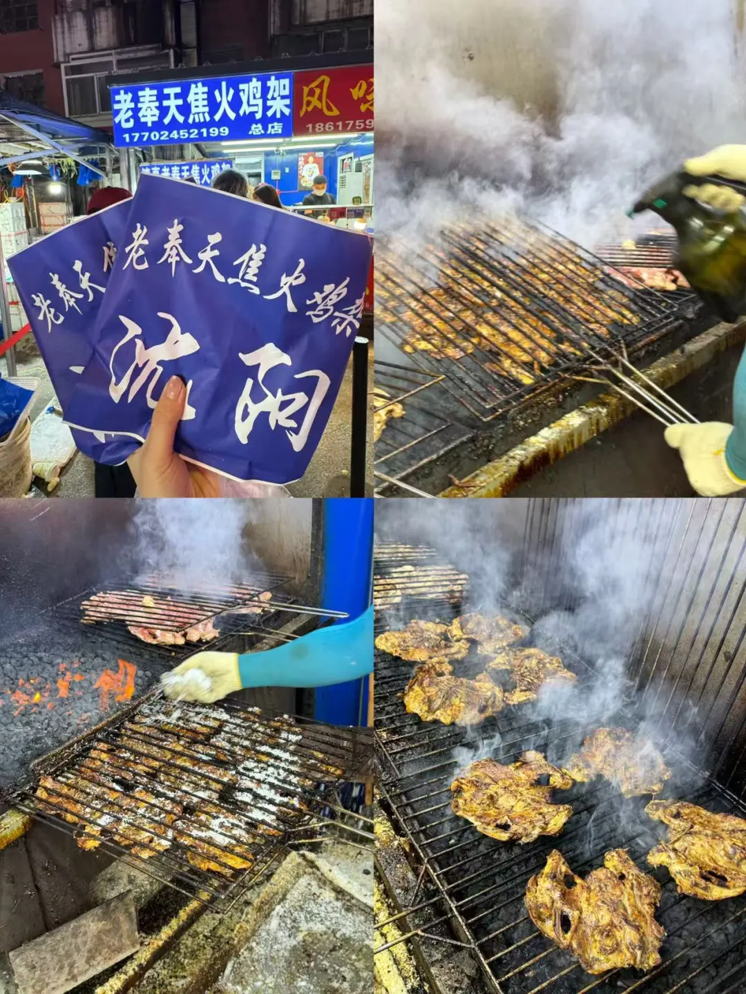 老奉天焦火鸡架,市场里的炭火烤鸡架,是真的香