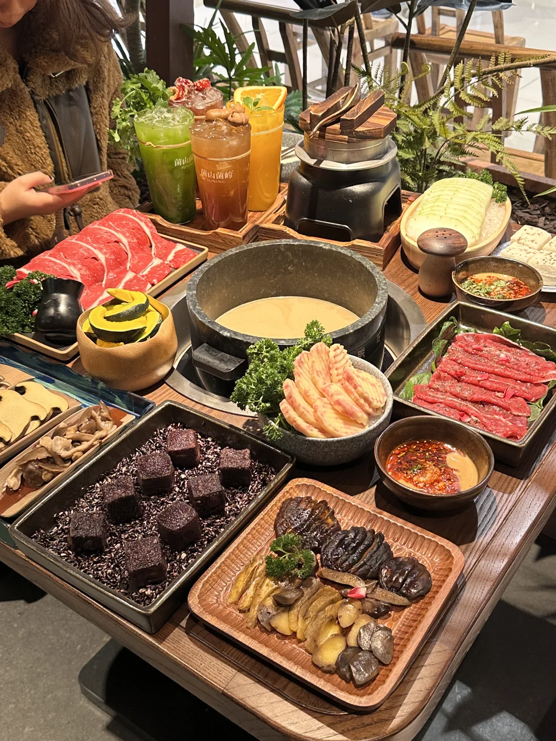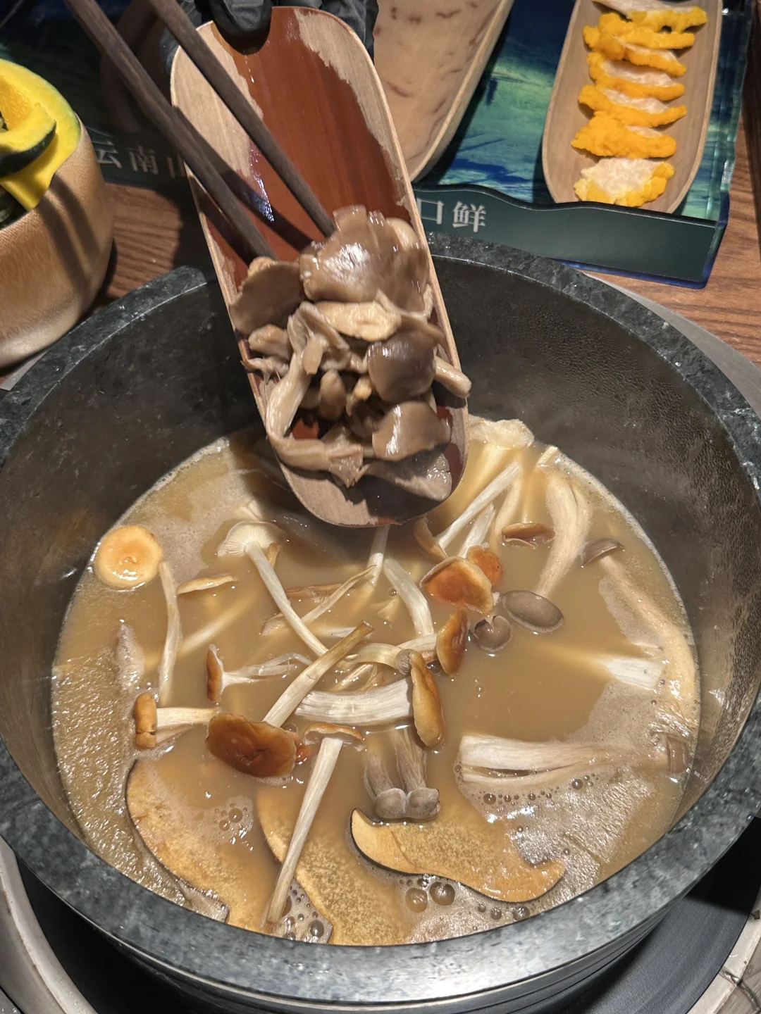 株洲洲我唯一想推荐的野生菌云南火锅 非周末中午都满座!!! 进门直接被环境惊艳到、 汤鲜到发疯!!严格计时12分钟才能吃,见手青煮熟好好吃 甜品和小吃也好好吃~紫米奶白酒、柠檬奶酪都好特别,一定要试试!