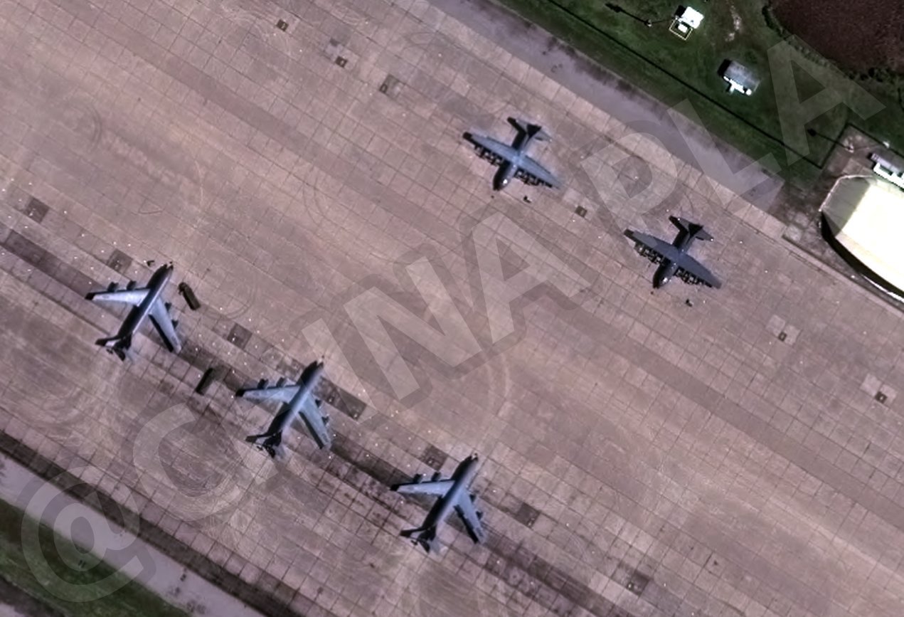 1月31日高清卫星图像显示,美国空军三架KC-135R加油机和两架C-130运输