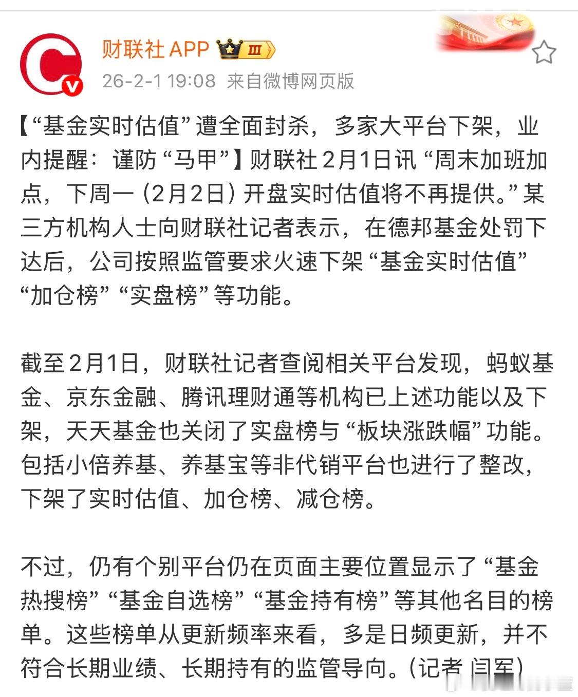 监管突然出手基金净值估算功能下架,周末全网看到一片骂声,为什么要关闭这个功能?2