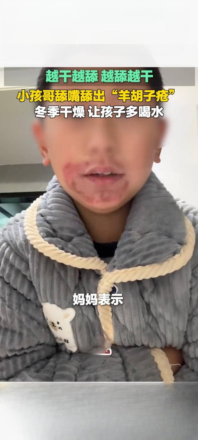 越干越舔!安徽10岁男孩舔唇舔出“羊胡子疮”,医生支招破解恶性循环 2026年2月1日,安徽一名10岁男孩因冬季频繁舔嘴唇,口周长出一圈红疹,形似“羊胡子”,被确诊为儿童口周皮炎(俗称“羊胡子疮”),相关事件引发家长群体广泛关注,其快手相关作品播放量已达6.4万次。 据男孩母亲介绍,孩子住校期间不爱喝水,冬季嘴唇干燥时便频繁舔舐,陷入“越干越舔、越舔越干”的恶性循环。因患处瘙痒,孩子还用衣服摩擦,导致炎症面积扩大,目前已遵医嘱用药治疗。 医生解析,唾液中的消化酶会破坏口周皮肤屏障,水分蒸发后反而加剧干燥,加上摩擦刺激,易引发炎症。典型症状为口周红斑、脱屑、瘙痒,严重时会出现渗液。 医生建议,家长需帮孩子戒断舔唇习惯,用温水清洁口周后,涂抹儿童专用保湿霜修复屏障;饮食上避免酸、辣、烫食物刺激;若出现皮疹扩大、流脓等情况,需及时就医,切勿自行用药。唇周发红 宝宝唇周红肿