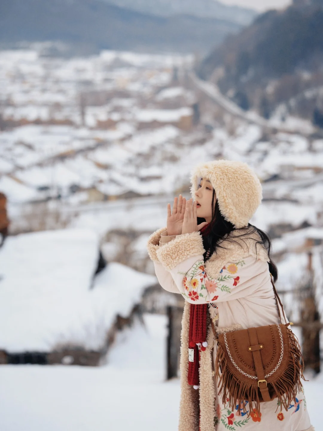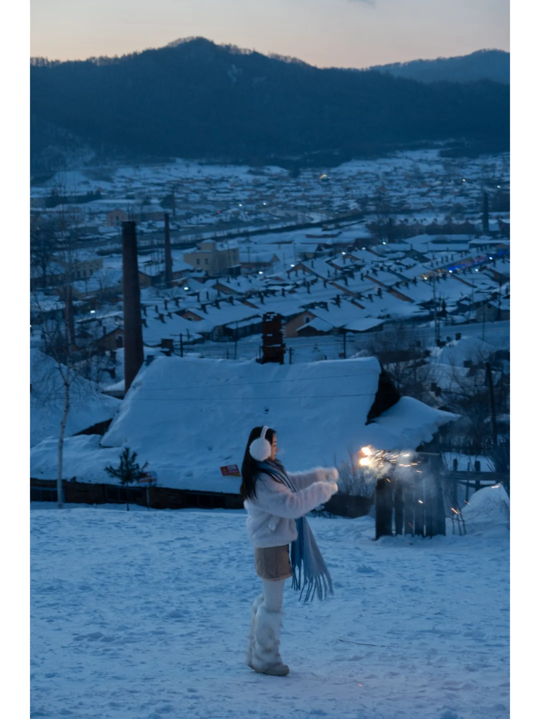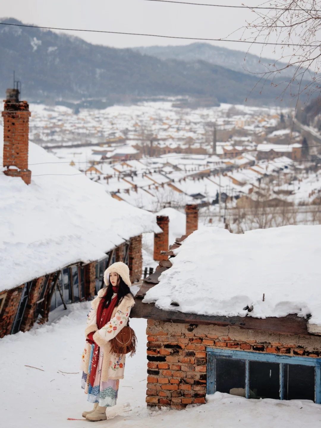 鳞次栉比的低矮房屋,坡屋顶覆盖着皑皑白雪,架起的烟囱里,烟雾就如云朵☁️一样吞吐而出。