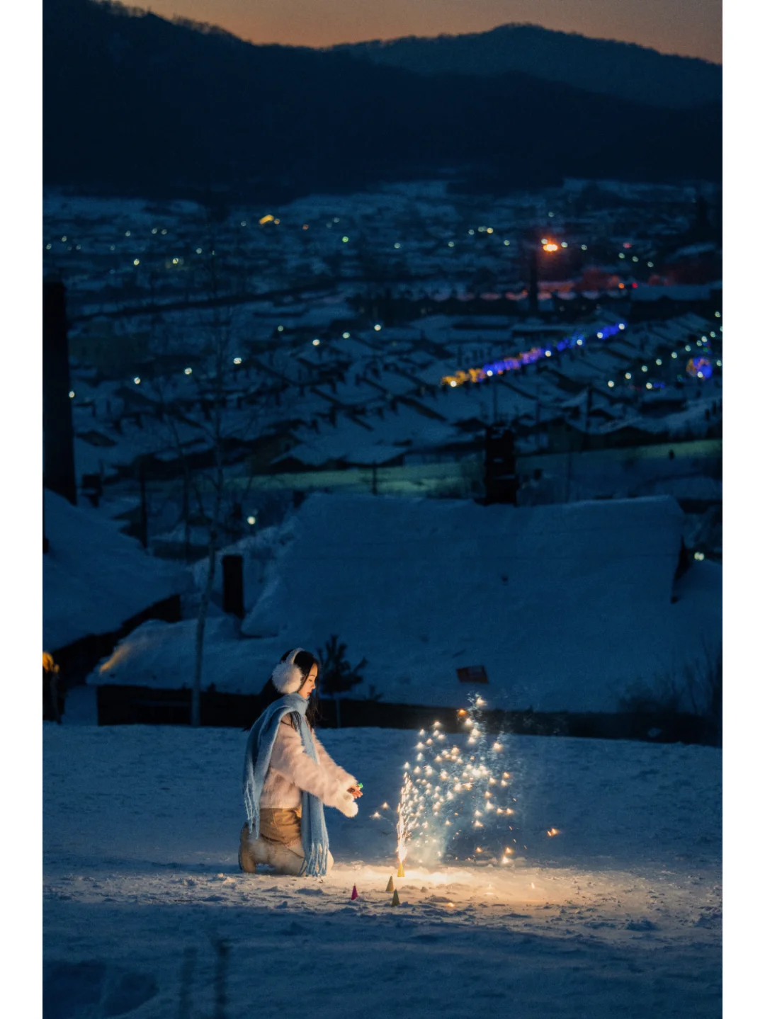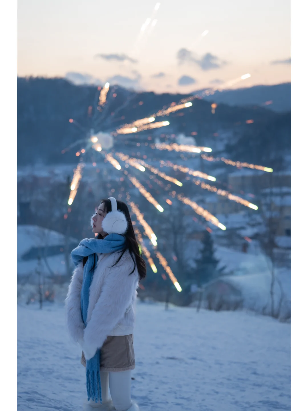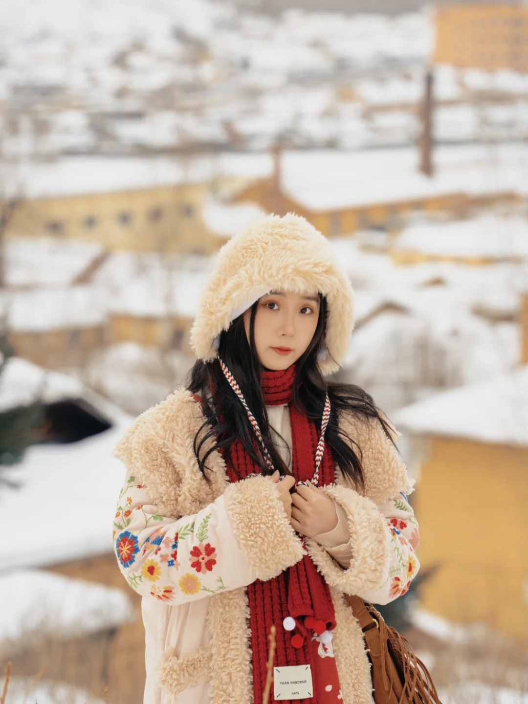 鳞次栉比的低矮房屋,坡屋顶覆盖着皑皑白雪,架起的烟囱里,烟雾就如云朵☁️一样吞吐而出。