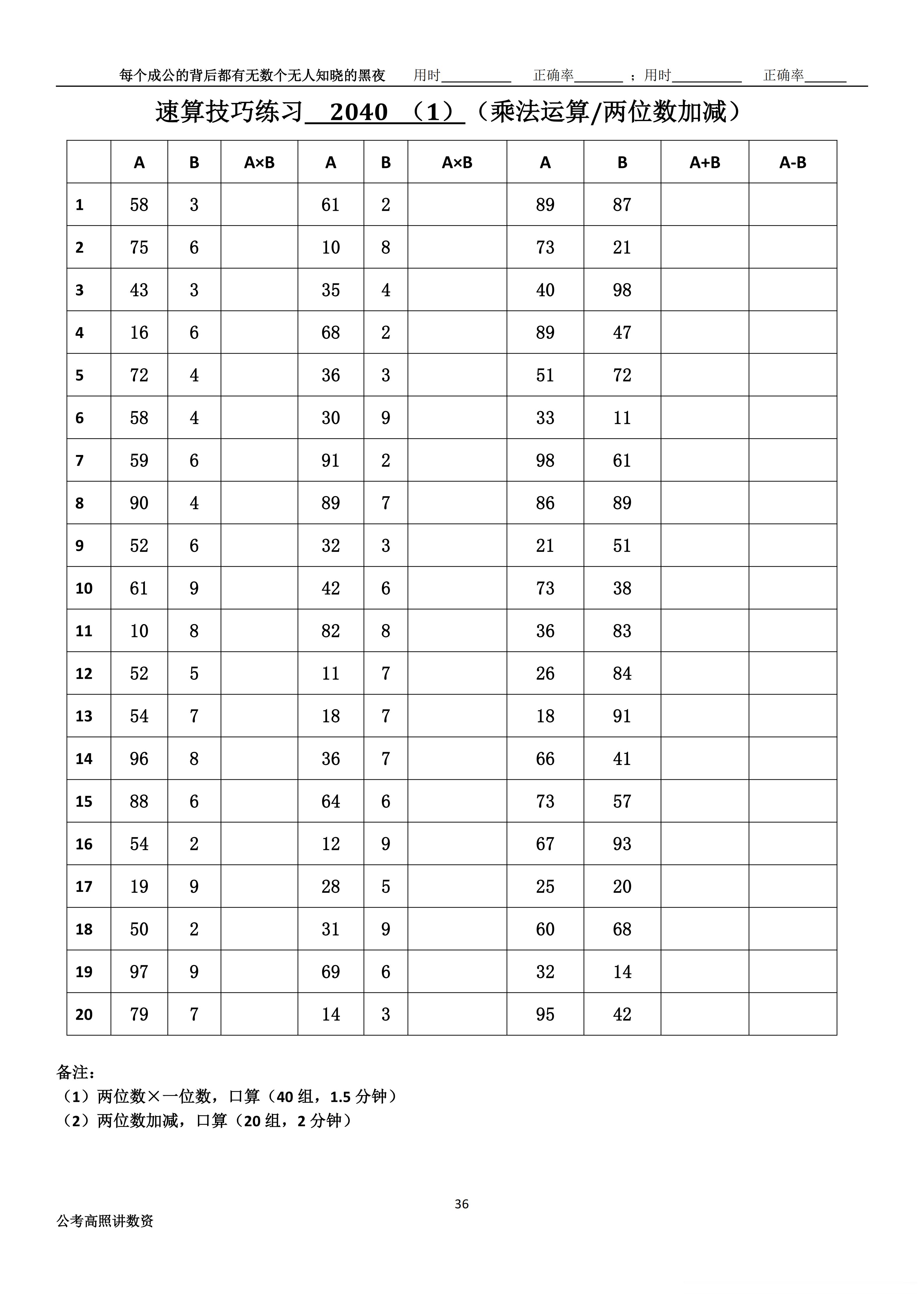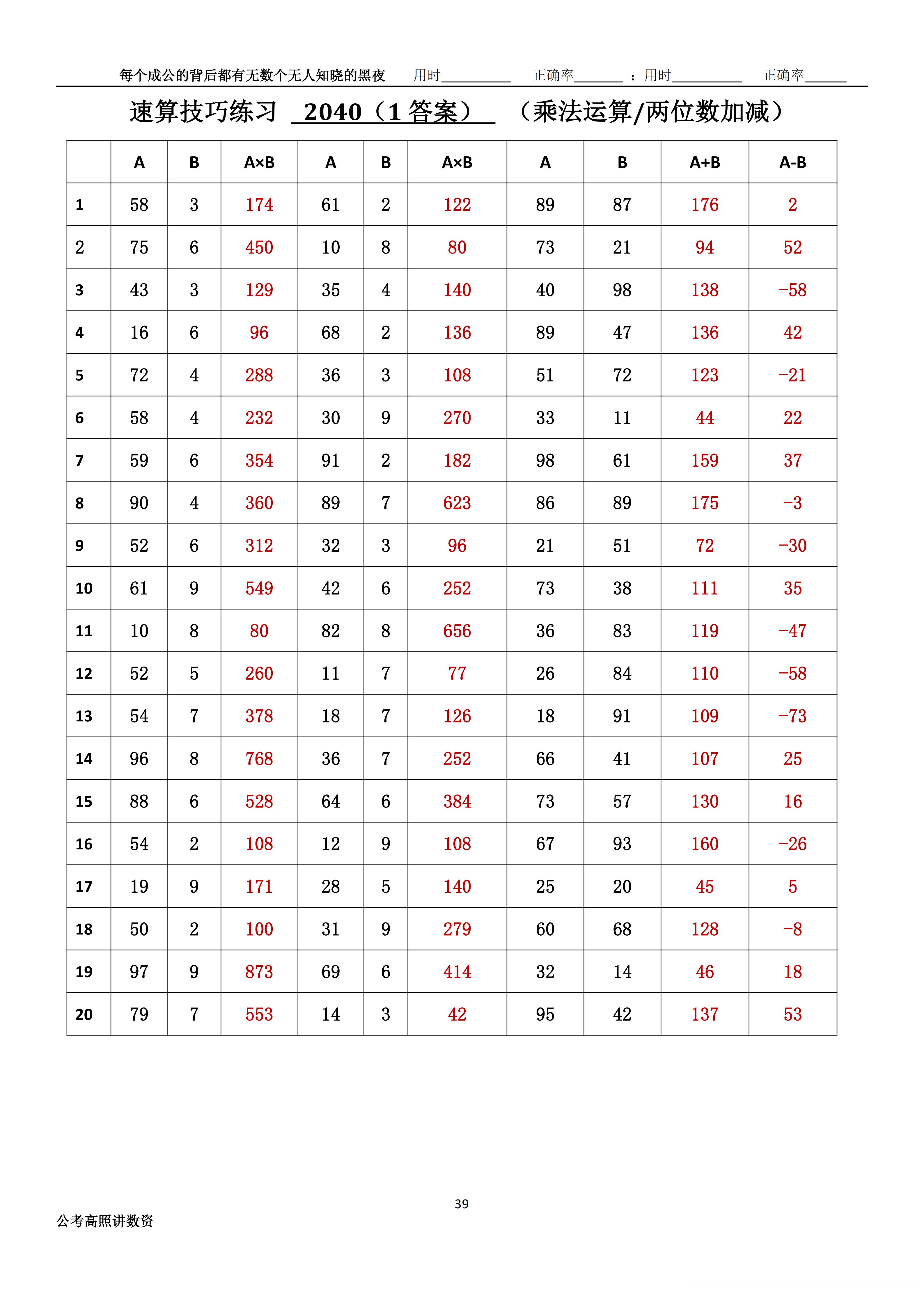 跟着高照练速算决战公考 速算练习2040