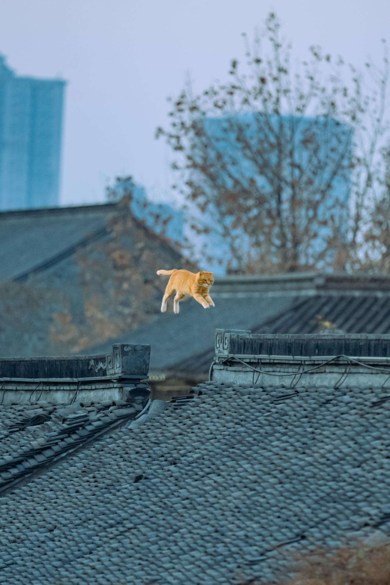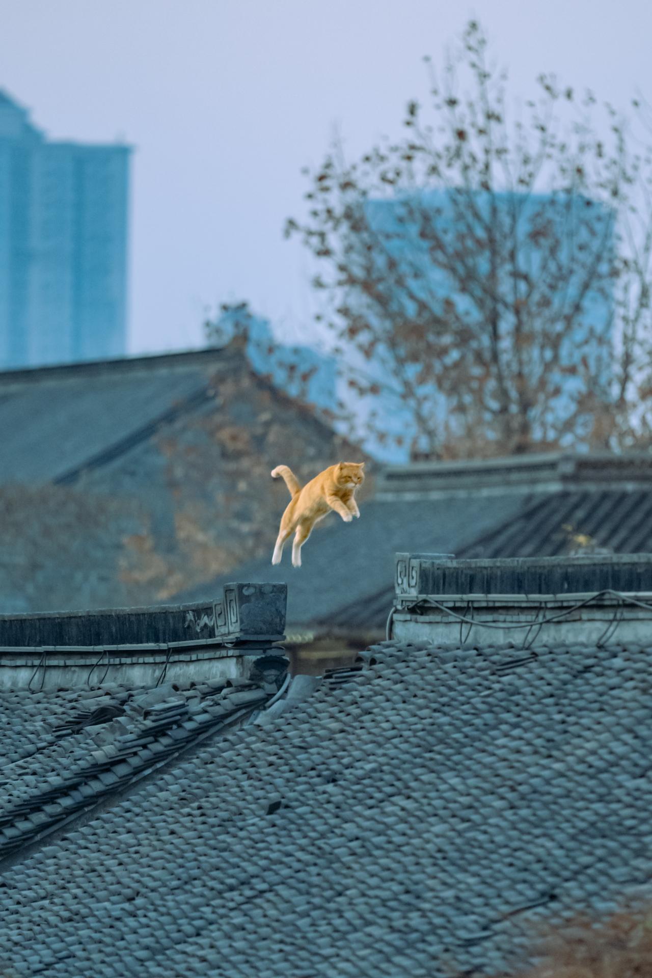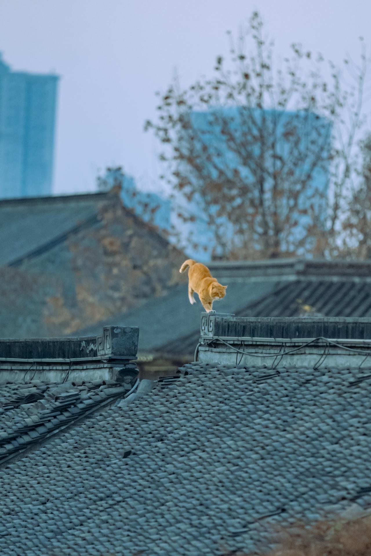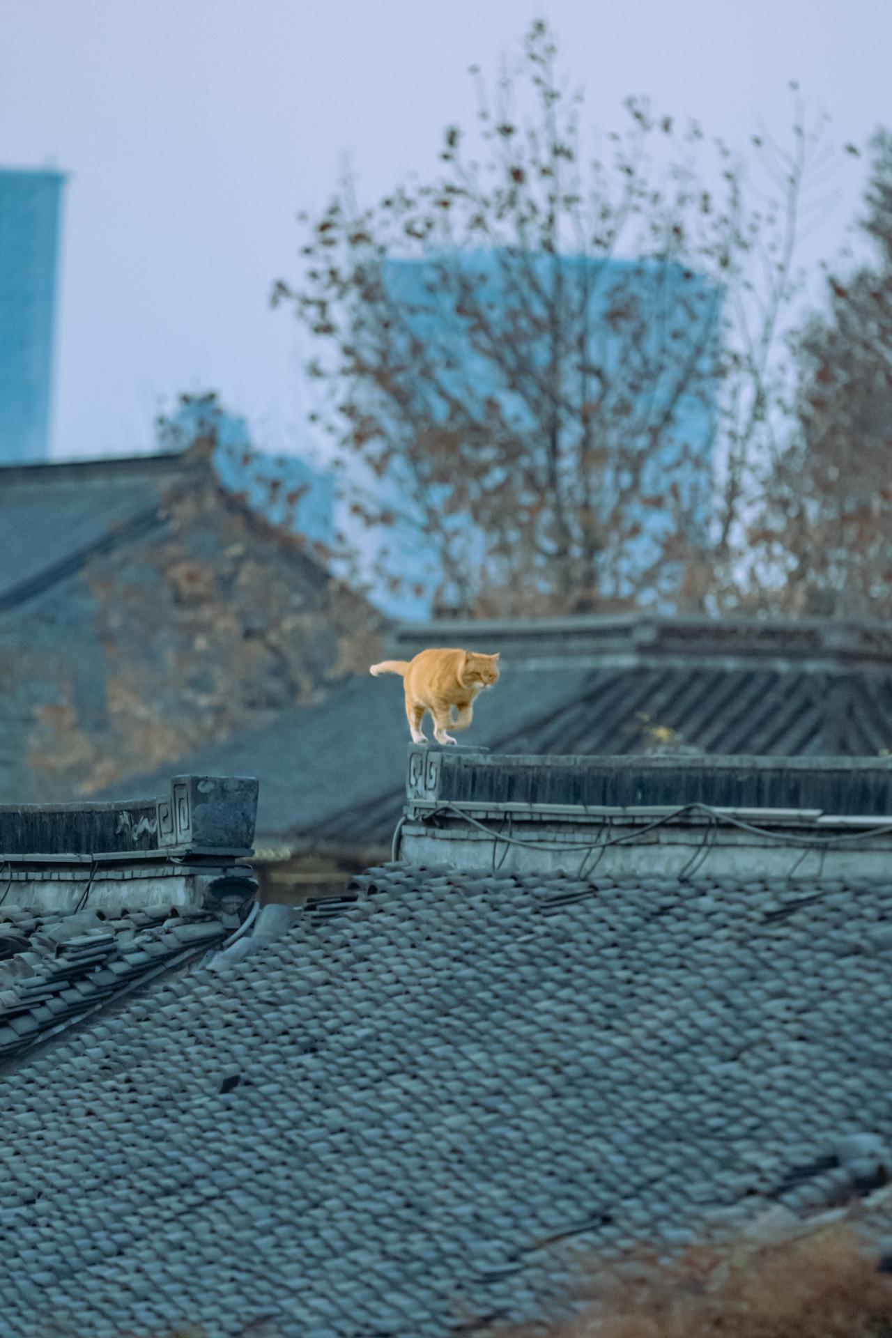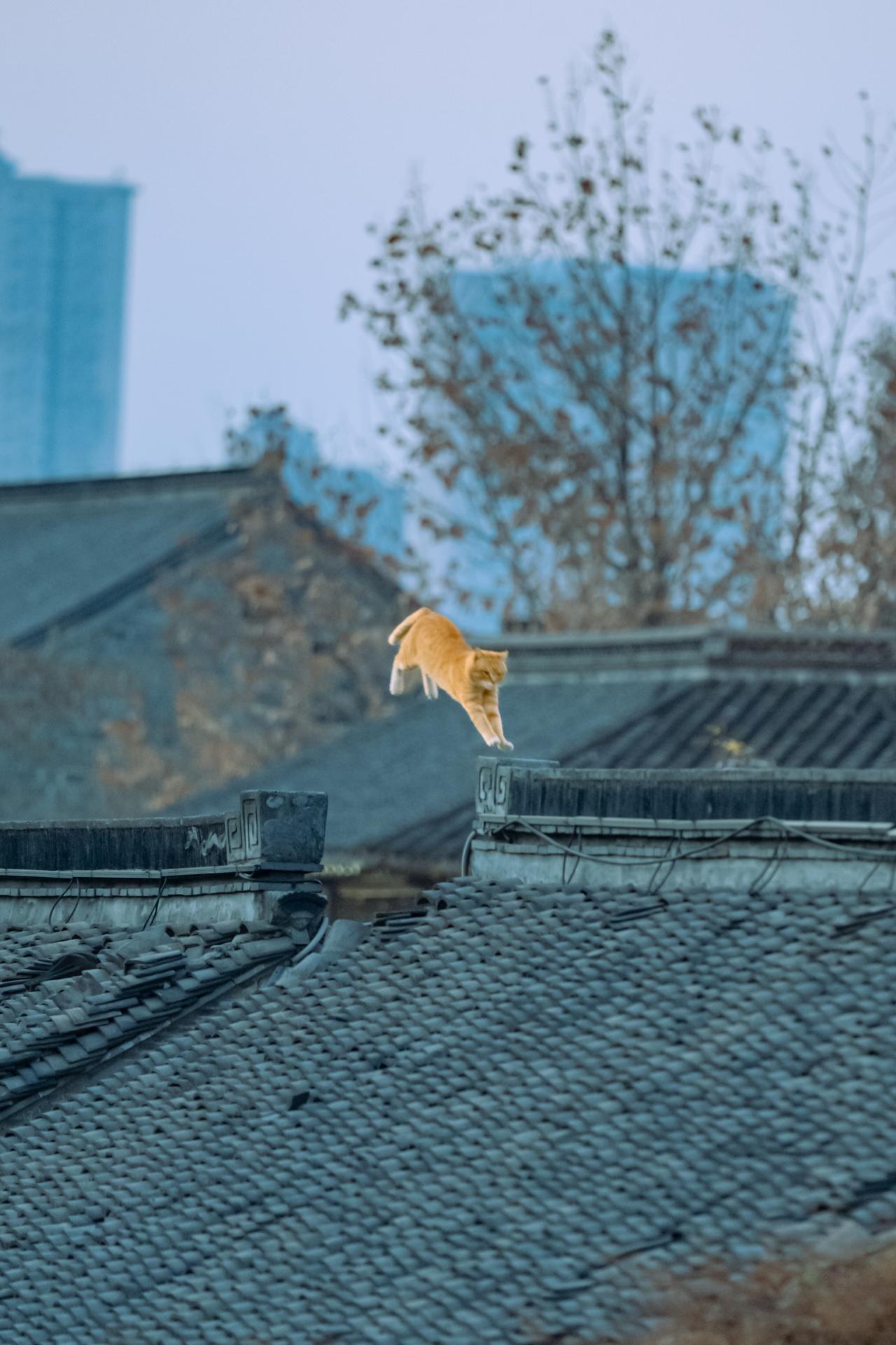江南老街上,拍到了世纪飞猫。这是今年一月在江南老街拍到的,暮色时分一只大橘从远处的屋顶飞到对面的屋顶,像是一位大侠急着飞奔去匡扶正义。也是好久没有用长焦拍到这样的大场景,当时很是激动,也一直没舍得发,特选在二月头天来发,以博个好兆头。
