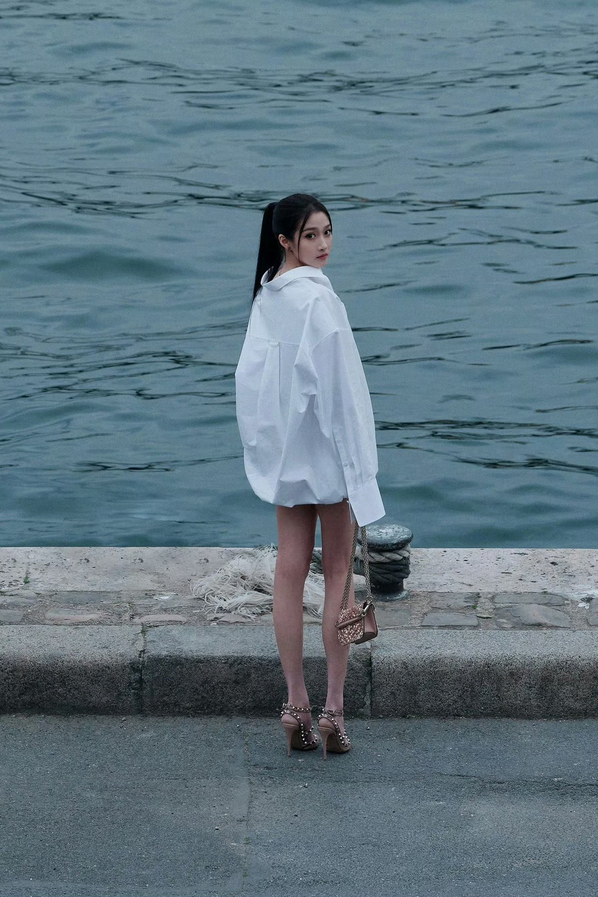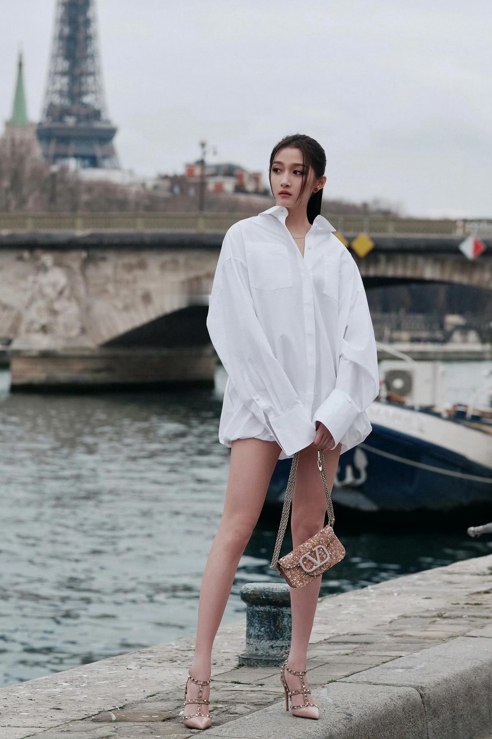 关晓彤白色穿搭妆造,大长腿是标配。关晓彤