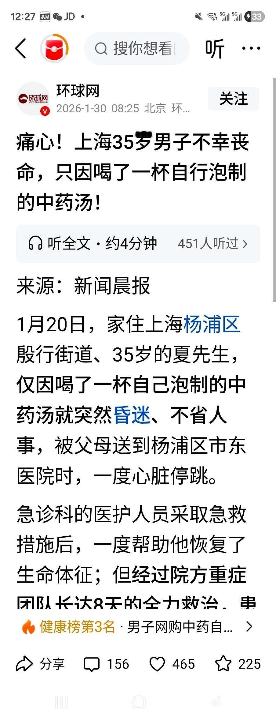 刚刷到一个新闻,给我看懵了。 一个36岁的男人,喝了一碗中药汤,人没了。 就一碗汤。 你说他傻吗?不懂去正规医院吗? 我猜他肯定去过。然后医生告诉他,慢性病,没法根治,拿着一堆药回家,吃到死。 进了医院的门,签的就是一份“终身服药合同”。谁甘心?36岁啊,人生才刚开了个头。 所以他去找了中医,想找条活路。 结果呢,命没了。 都说西医靠良心,中医靠缘分。这话真他妈扎心。 西医那套,是数据堆出来的,白纸黑字,一个萝卜一个坑,不求有功但求无过。 中医这玩意儿,是老师傅拿人一点点喂出来的经验。一个方子,在你身上是灵丹,在他身上可能就是砒霜。 这缘分,上哪儿找去? 好中医,那是宝贝,藏在犄角旮旯里,你得靠命去碰。 我以前就碰见过一个,真神了。可惜啊,老爷子走得早,一身的本事,没留下来。眼睁睁看着好东西就这么断了。 我一朋友,年纪轻轻一身的毛病,西医判了死缓。最后在云南山沟沟里,愣是被一个民间土郎中给救回来了。你猜那郎中怎么会的?他自己就是得这个病,硬是靠自己摸索,把自己治好了,然后才开始治别人。 这叫什么?这就是福分,是拿命换来的生机。 那个喝药走了的哥们,他想要的,不也是这份生机吗? 他只是……运气太差了。 现在的江湖太乱了。手机上划两下,全是“神方”“秘方”,真假谁分得清? 真正有本事的,要么你挂不上号,要么你压根不知道他在哪儿。 这感觉,真他妈的无力。