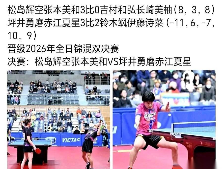 一天打三场,还全赢了。 张本美和这丫头,是铁打的吧? 刚结束的混双,她跟松岛辉空