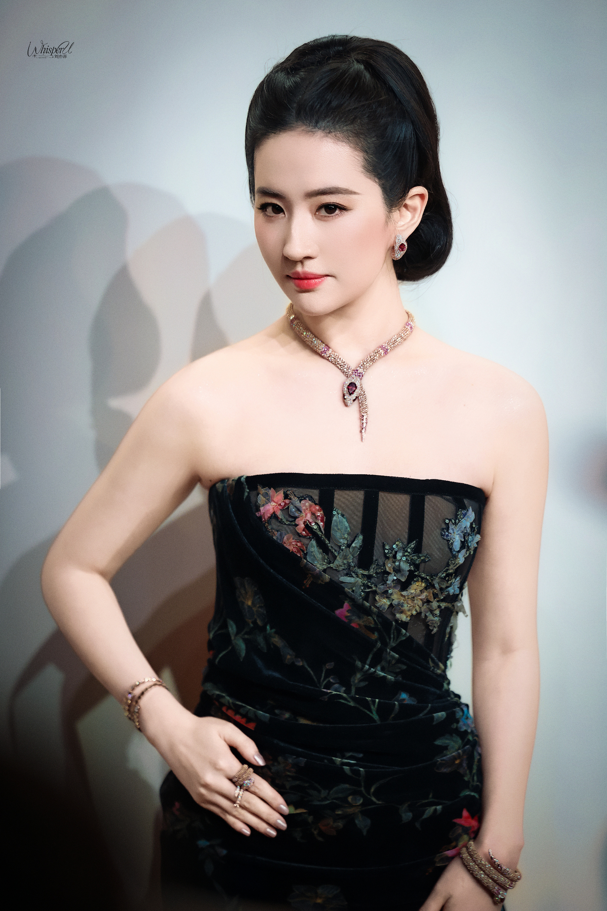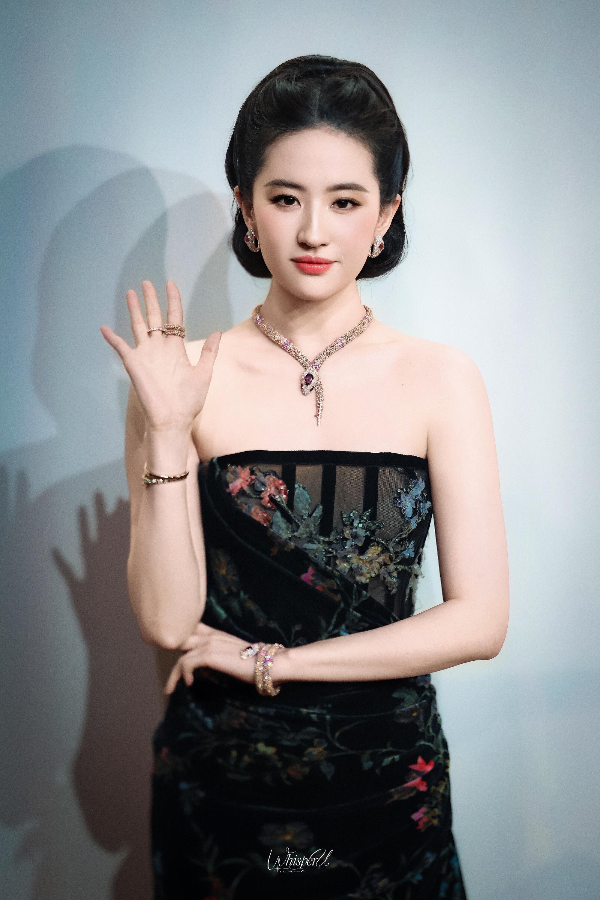 刘亦菲的礼服造型真的绝了![比心]玫瑰红抹胸裙一出场就惊艳全场,亮片如银河倾洒,