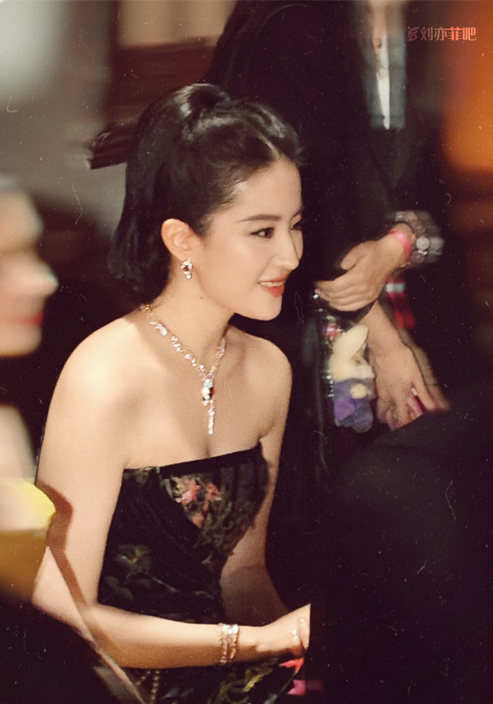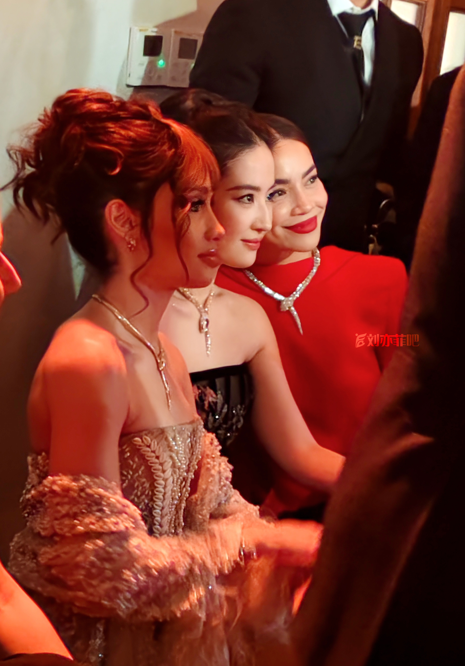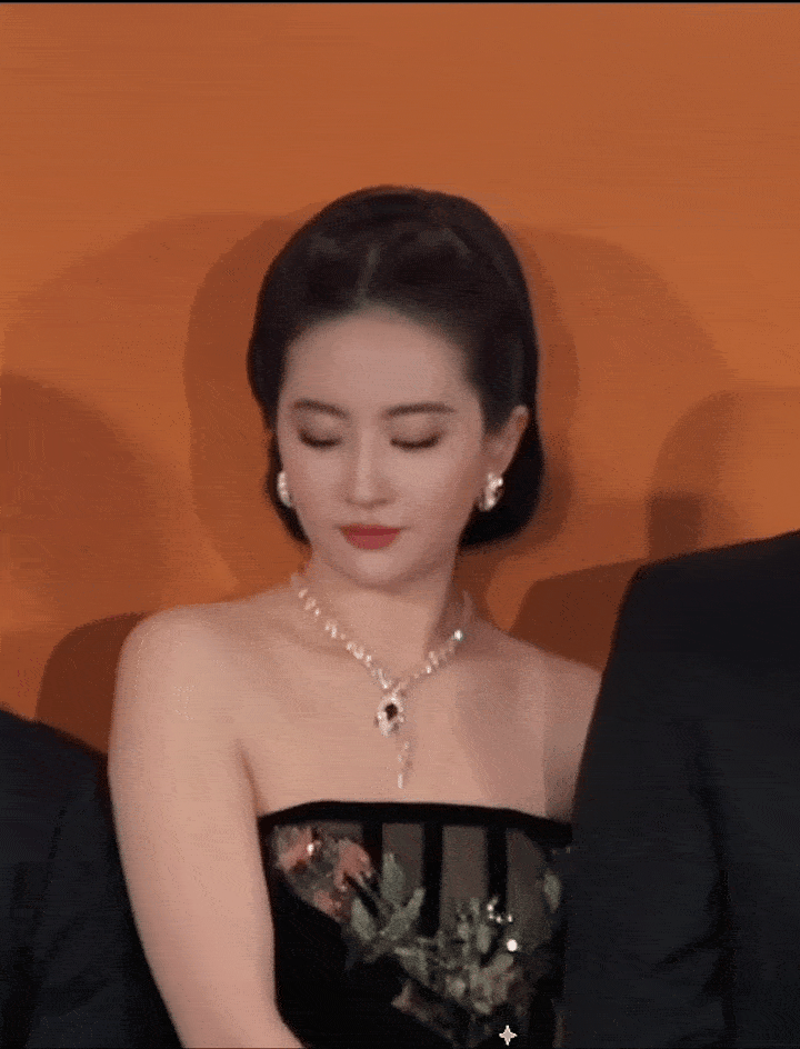 刘亦菲盛装大片抹胸黑裙,被挤到的表情,好可爱呀。刘亦菲