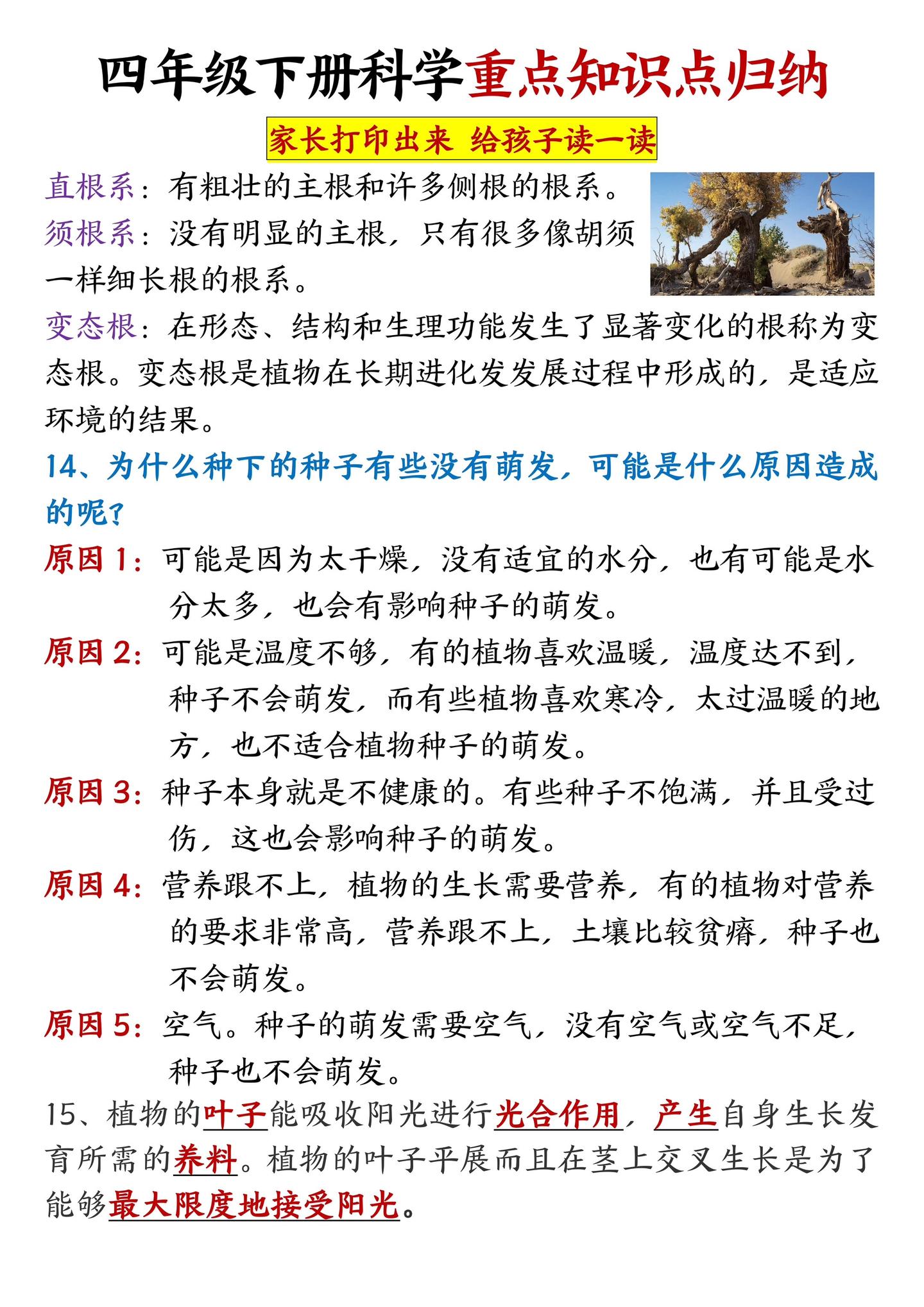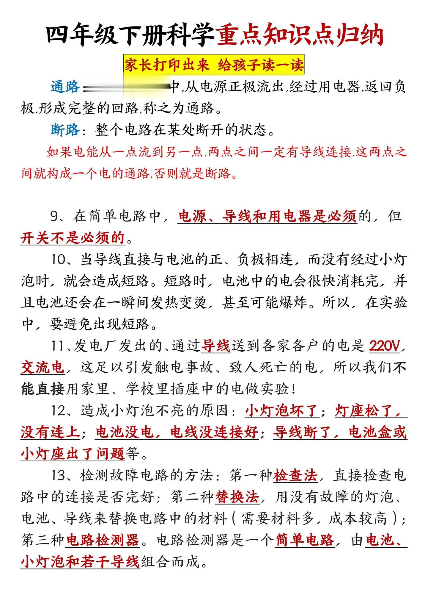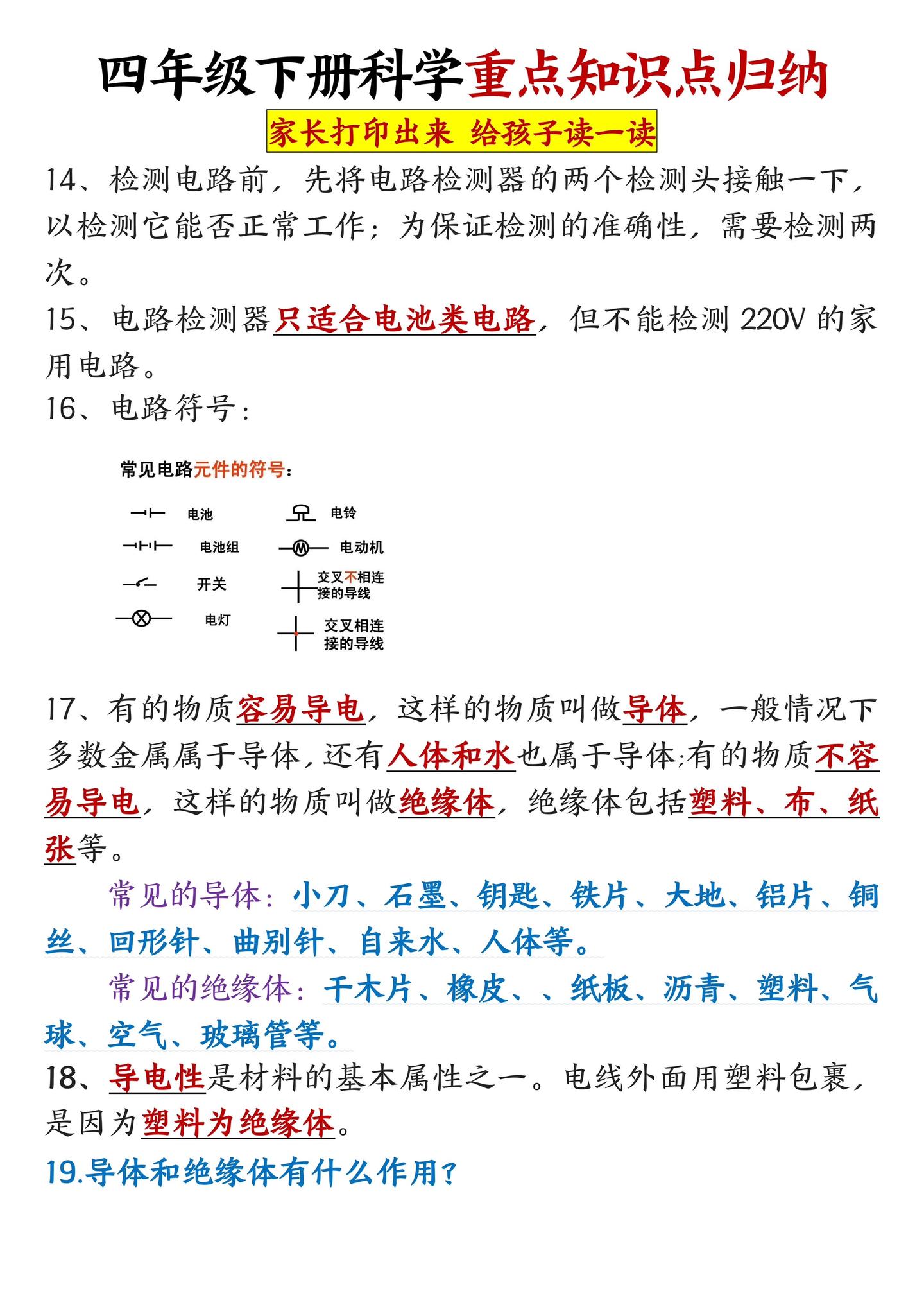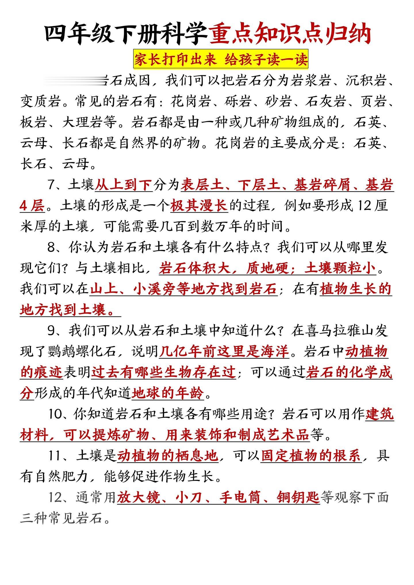 26春小学四年级科学下册知识点总结。知识分享 每天跟我涨知识 陪娃学习 有需要可以自行下载打印出来。永春县桃城镇师范路最便宜打印店 八方文印店。