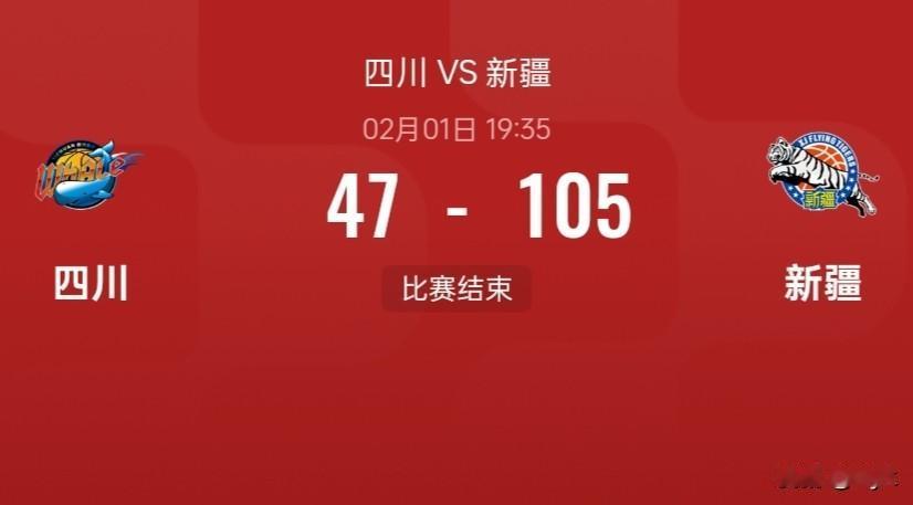 22连败+58分惨案,四川男篮的至暗时刻与CBA的冰冷现实。 2026年2月1日,CBA常规赛新疆客场105-47狂胜四川,58分的分差不仅刷新四川队史最大输球分差,也将其连败纪录推至22场,这场一边倒的比赛,既是四川男篮的至暗时刻,也折射出CBA联赛的冰冷现实。 四川队的溃败并非偶然,本赛季他们以全华班出战,阵容深度不足、青训断层的问题被彻底放大。面对新疆双外援的冲击,四川队从第一节就陷入崩盘,全场仅得47分,进攻端近乎瘫痪,长期连败更让球员斗志尽失,陷入“怕输”的恶性循环。 这场58分惨案的背后,是CBA联赛的失衡困局。资本向强队集中,强弱差距持续拉大,“一边倒”的比赛正在消磨球迷热情。四川队的困境并非孤例,它暴露出弱队在青训、引援上的普遍短板,也让联赛如何平衡竞争生态的问题愈发紧迫。 对于四川队而言,22连败的耻辱已是既定事实,但放下包袱、从打磨基本功和培养年轻球员做起,或许能成为触底反弹的起点。而对于CBA来说,如何通过政策调整缩小差距、扶持弱队,将决定联赛能否走得更远。