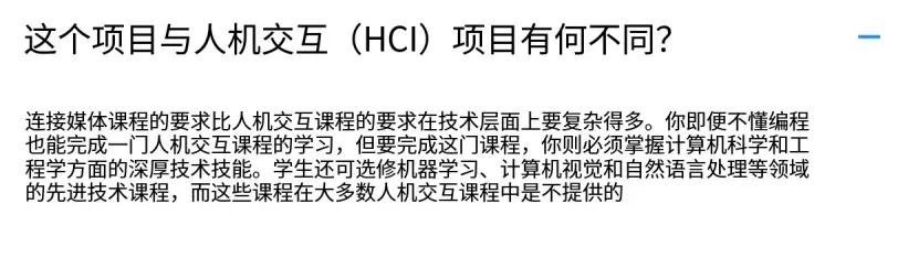 录取要求和案例拆解Connective Media专业的核心是技术、人文社科的交叉。