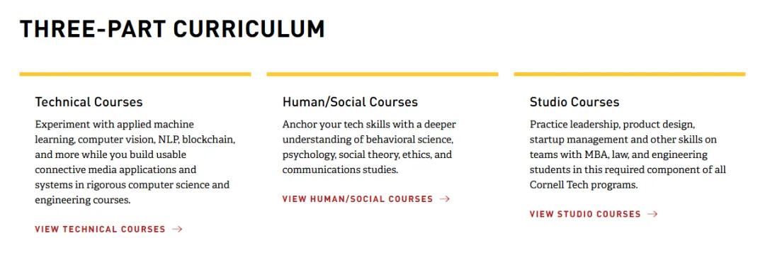 Studio课程是Cornell Tech项目里另一个值得单独说的设计。学生要和MBA、法律、工程不同背景的同学组成跨学科团队,做真实的产品或创业项目,面向真实用户验证想法,并向投资人展示成果。这部分的训练对学生的产品思维、团队协作和表达能力都有比较直接的要求和提升。
