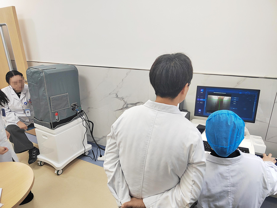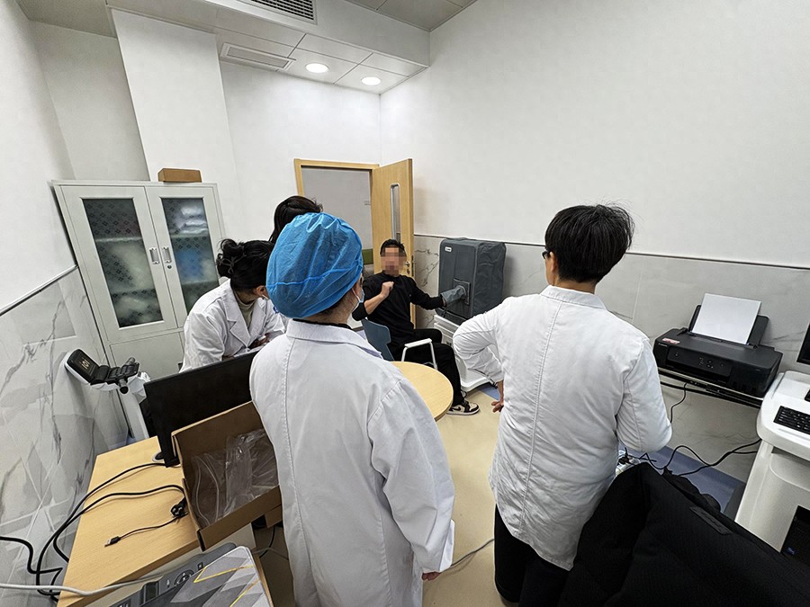 设备装机完成后,厂家专业技术人员对医院医护人员开展系统化操作培训,围绕设备操作流程、图像采集规范、报告解读要点、日常维护保养等内容进行详细讲解与实操指导,确保医护人员熟练掌握设备使用技能,保障临床检测工作规范、高效开展。目前,设备已完成全流程调试,各项性能指标符合临床使用标准,可正式为患者提供检测服务。