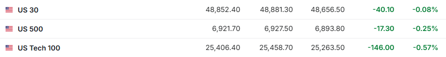 在投资者消化科技股抛售、贵金属剧烈波动以及美国总统特朗普提名凯文·沃什为下一任美联储主席的消息后,美股三大股指上周五全线收跌——道琼斯指数跌0.36%,标普500指数跌0.43%,纳斯达克综合指数跌0.94%,但全周变化不大——道琼斯指数全周累跌0.4%,标普500指数累涨0.3%,纳斯达克综合指数累跌0.2%。