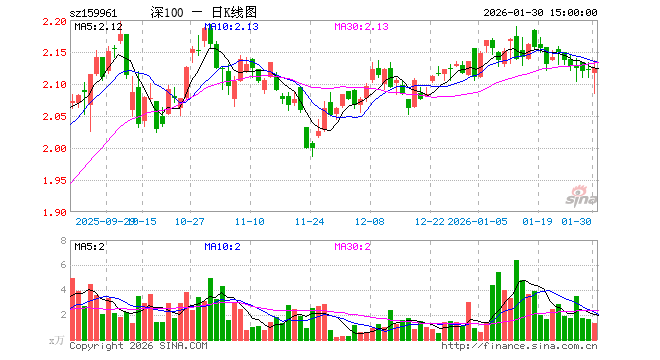 1月30日,深100ETF方正富邦(159961)涨0.09%,成交额279.04万元。当日份额增加100.00万份,最新份额为1.55亿份,近20个交易日份额减少1800.00万份。最新资产净值计算值为3.30亿元。
