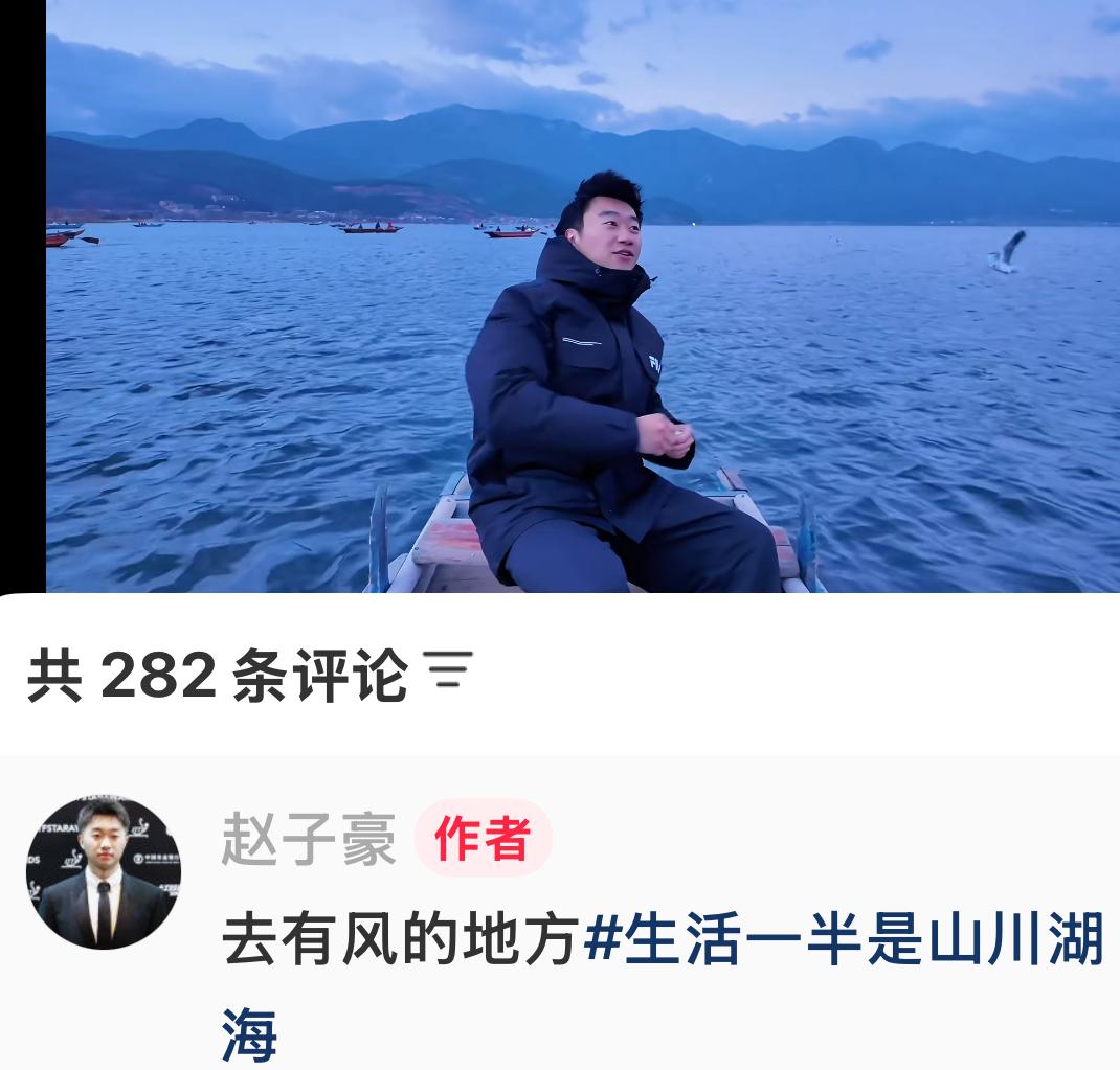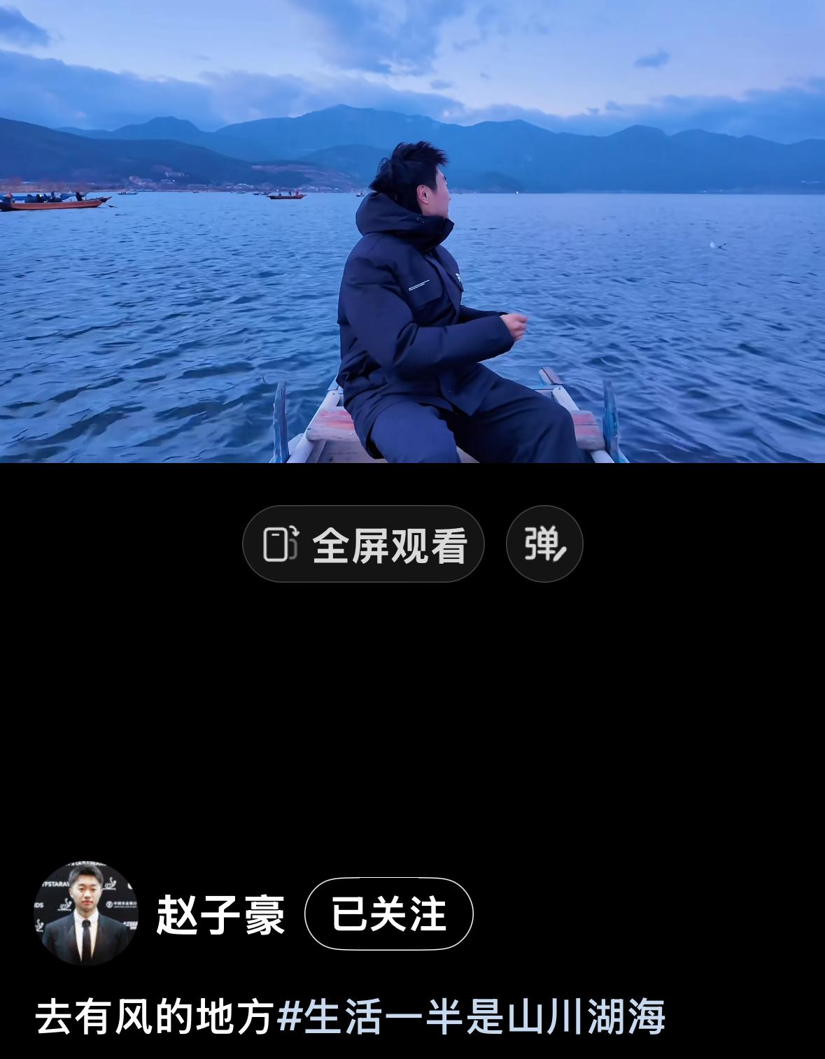 赵子豪更新:去有风的地方——生活一半是山川湖海 赵子豪去泸沽湖啦, 看了去有风的地方, 太治愈了, 超级想去, 有猪槽船,太美了, 谁给赵子豪拍摄的, 有点水平, 真美真帅, 赵子豪退出国家队后,首先就是 游遍祖国的大好河山, 赵子豪,人生就是旷野, 不止只有乒乓球🏓, 希望你放松心情后, 继续奔赴热爱, 下一段人生旅程更加精彩! 赵子豪可以当旅游博主, 他选的景真的很棒, 旅游景点中闹中取静, 笑容灿烂,非常有感染力, 阳光微风,一切都刚刚好!
