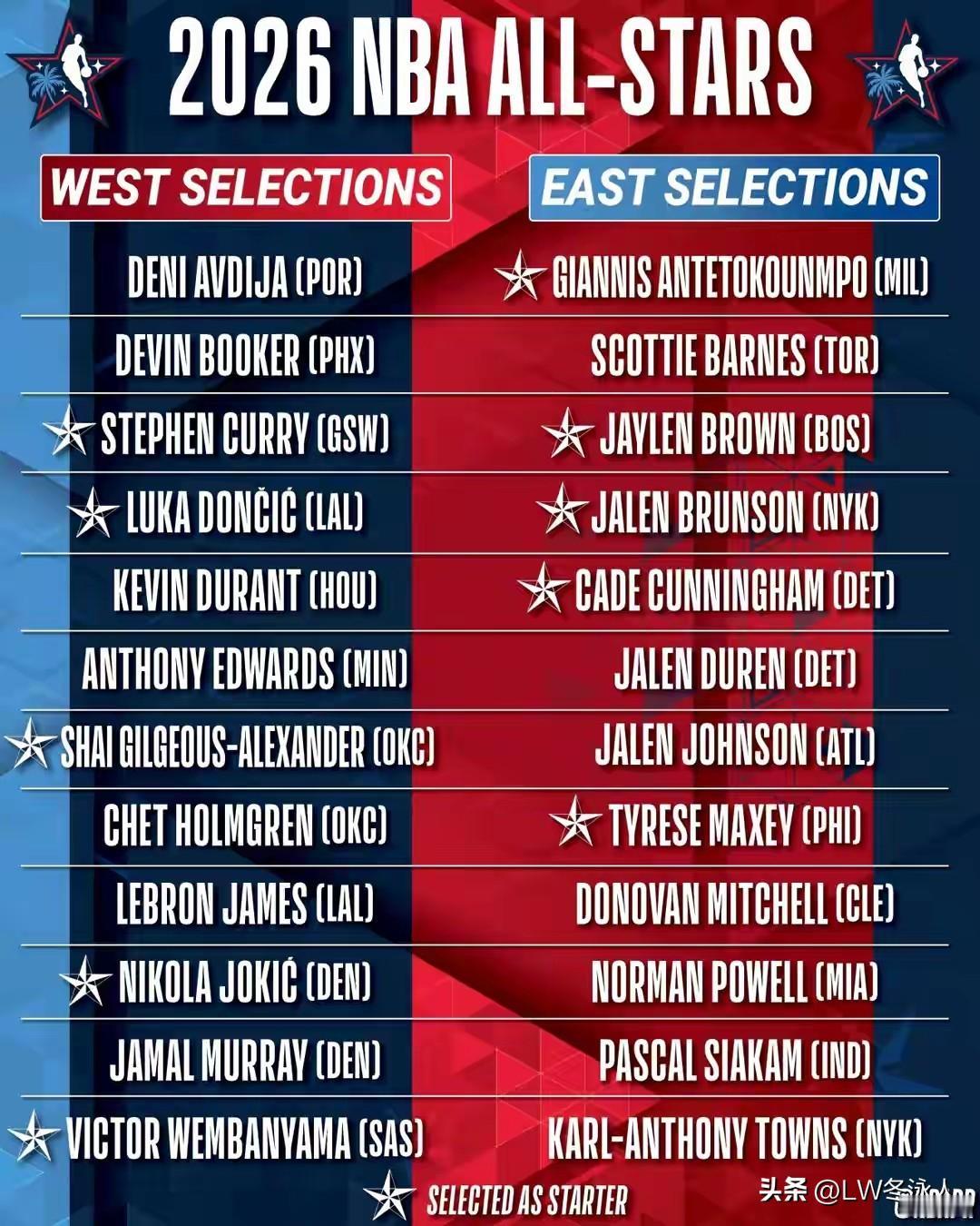 2025-2026全明星赛阵容一公布 ,就明白为啥快船被裁判针对,为啥哈登一打季