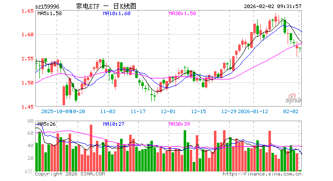 家电ETF(159996)业绩比较基准为中证全指家用电器指数收益率,管理人为国泰基金管理有限公司,基金经理为苗梦羽,成立(2020-02-27)以来回报为57.00%,近一个月回报为1.19%。