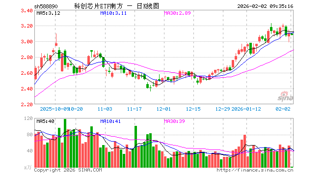 2月2日,科创芯片ETF南方(588890)开盘跌0.32%,报3.095元。科创芯片ETF南方(588890)重仓股方面,中芯国际开盘跌1.28%,海光信息跌1.68%,寒武纪跌0.79%,澜起科技跌0.47%,中微公司跌0.99%,拓荆科技跌4.46%,芯原股份跌3.16%,华虹公司跌1.35%,沪硅产业跌1.38%,东芯股份跌1.96%。