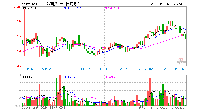 2月2日,家电ETF易方达(159328)开盘涨0.61%,报1.157元。家电ETF易方达(159328)重仓股方面,三花智控开盘跌1.02%,格力电器跌0.26%,美的集团涨0.01%,海尔智家涨0.00%,麦格米特跌0.14%,四川长虹跌1.02%,石头科技跌0.39%,海信视像跌0.04%,科沃斯涨0.25%,兆驰股份跌1.03%。