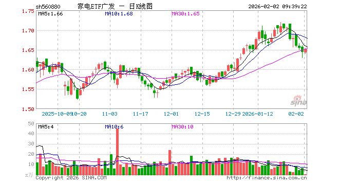 家电ETF广发(560880)业绩比较基准为中证全指家用电器指数收益率,管理人为广发基金管理有限公司,基金经理为陆志明,成立(2022-03-30)以来回报为64.60%,近一个月回报为1.29%。