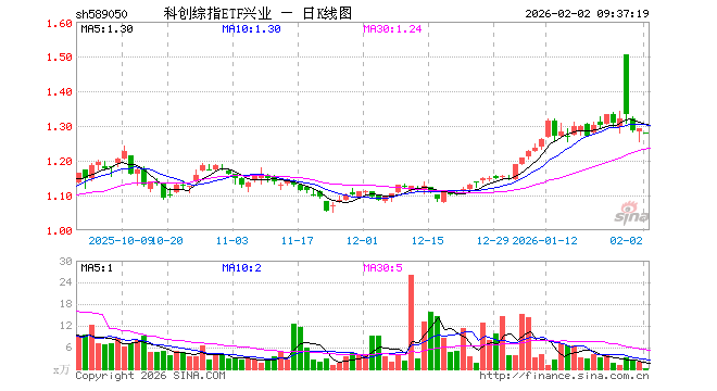科创综指ETF兴业(589050)业绩比较基准为上证科创板综合价格指数收益率,管理人为兴业基金管理有限公司,基金经理为徐成城、张诗悦,成立(2025-07-30)以来回报为28.65%,近一个月回报为11.52%。