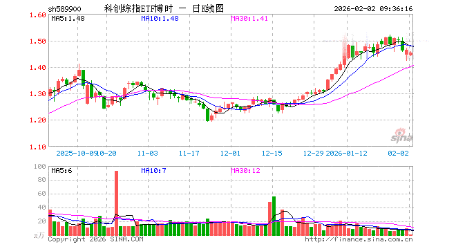 2月2日,科创综指ETF博时(589900)开盘跌1.44%,报1.442元。科创综指ETF博时(589900)重仓股方面,寒武纪开盘跌0.79%,海光信息跌1.68%,中芯国际跌1.28%,中微公司跌0.99%,金山办公跌1.11%,澜起科技跌0.47%,百利天恒跌1.38%,联影医疗跌0.62%,影石创新涨0.18%,拓荆科技跌4.46%。