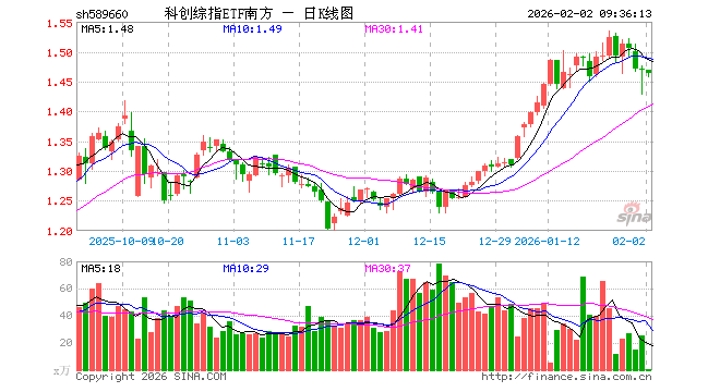 2月2日,科创综指ETF南方(589660)开盘涨0.00%,报1.468元。科创综指ETF南方(589660)重仓股方面,寒武纪开盘跌0.79%,海光信息跌1.68%,中芯国际跌1.28%,中微公司跌0.99%,金山办公跌1.11%,澜起科技跌0.47%,百利天恒跌1.38%,联影医疗跌0.62%,影石创新涨0.18%,拓荆科技跌4.46%。