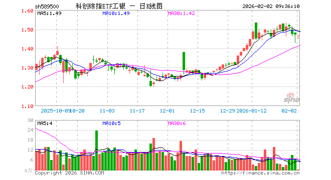 科创综指ETF工银(589500)业绩比较基准为上证科创板综合价格指数收益率,管理人为工银瑞信基金管理有限公司,基金经理为史宝珖,成立(2025-02-24)以来回报为47.09%,近一个月回报为11.42%。