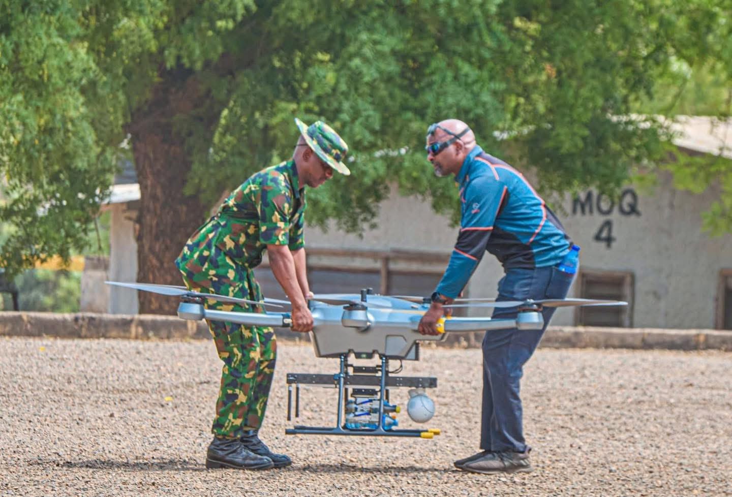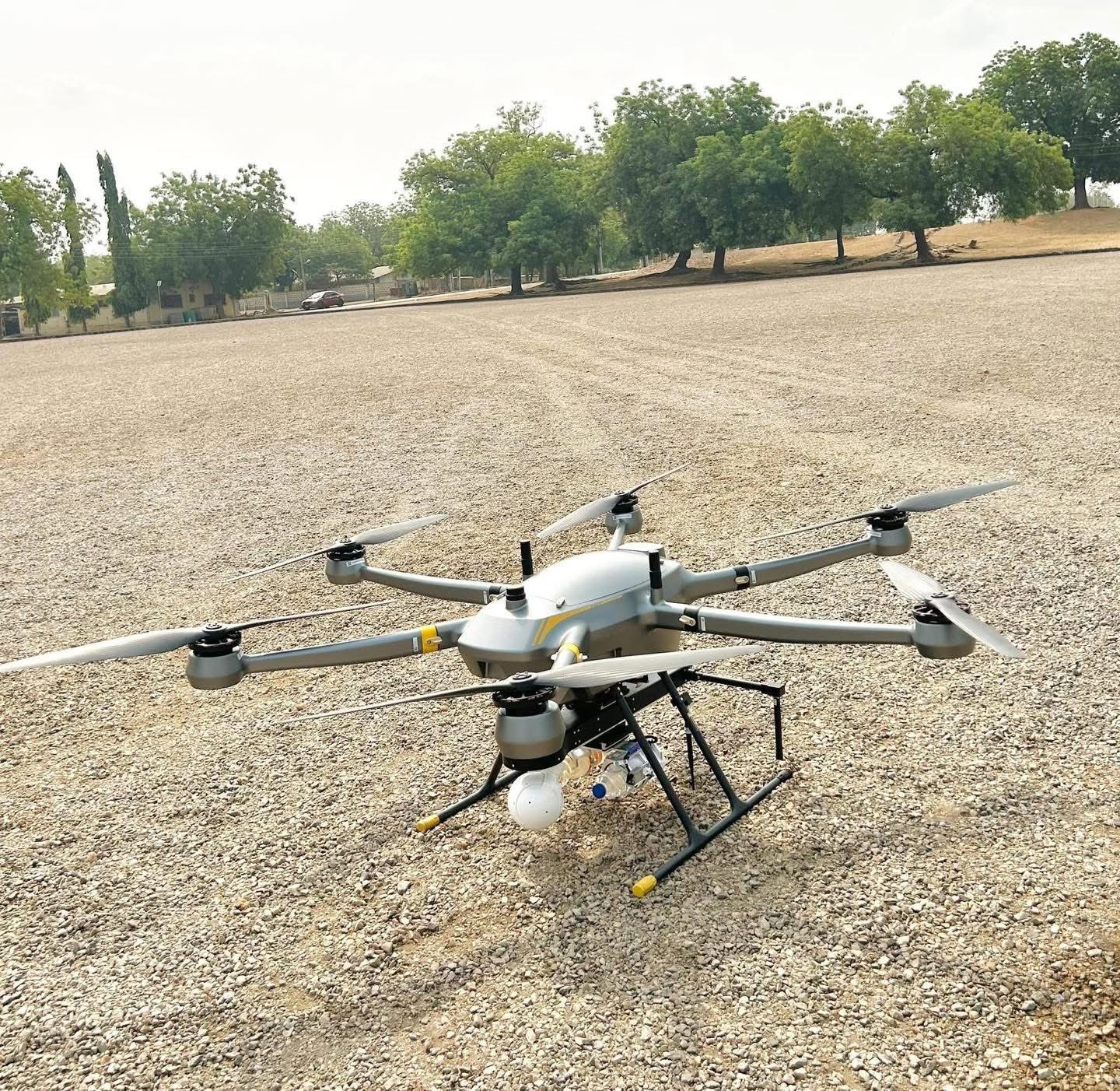 每天认识一件兵器 尼日利亚科吉州政府向尼日利亚陆军洛科贾第 12 旅捐赠了 2 架中国制造的 PH-20 JOUAV 六旋翼无人机。这些无人机似乎配备有可携带小型弹药,如 60 毫米迫击炮弹。根据制造商的规格,其载重为 10 公斤,满载续航时间为 55 分钟,工作半径为 30 公里。