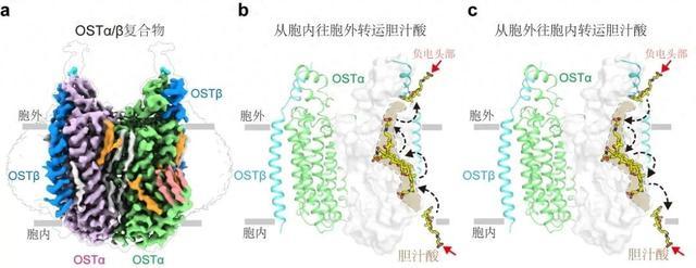 研究首次解析了人胆汁酸转运蛋白OSTα/β复合体的高分辨率三维结构并阐明了其独特的工作机理,解决了长期以来关于OSTα/β组装方式和转运机制不明的根本问题,为理解胆汁酸的跨膜运输提供了全新的结构框架,也为针对OSTα/β的靶向药物开发奠定了坚实的理论基础。