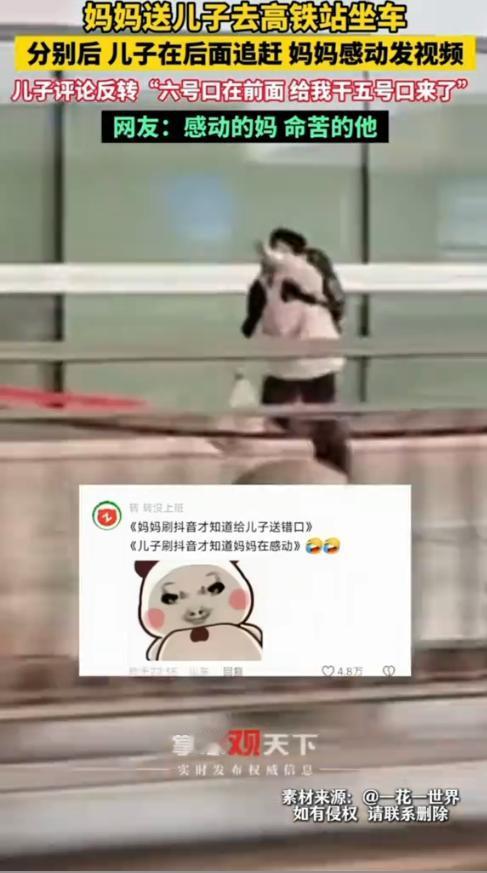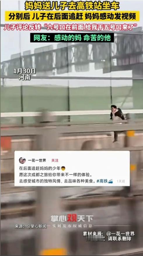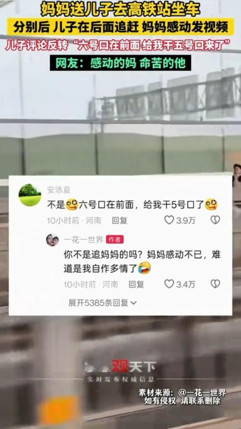 “笑不活了”!近日,河南郑州,一女子送儿子到高铁站,分别后看到儿子疯狂追着自己的