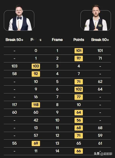 小特10:4墨菲,终于拿到本赛季第一个冠军,也不枉海报上的C位。目前16项比赛诞生14位冠军,中国3位球员上榜,仅塞大师和囧哥拿下2冠。 至此前16球员里有11人本赛季拿到冠军,巫师、丁俊晖、火箭、霍师傅和斯佳辉未能夺冠。下面的几项比赛冠军会从他们中间产生吗?