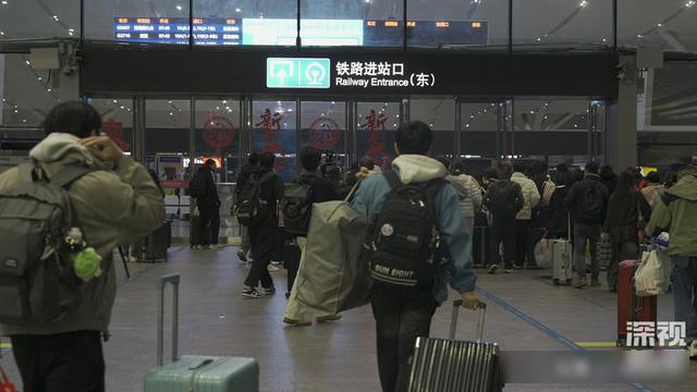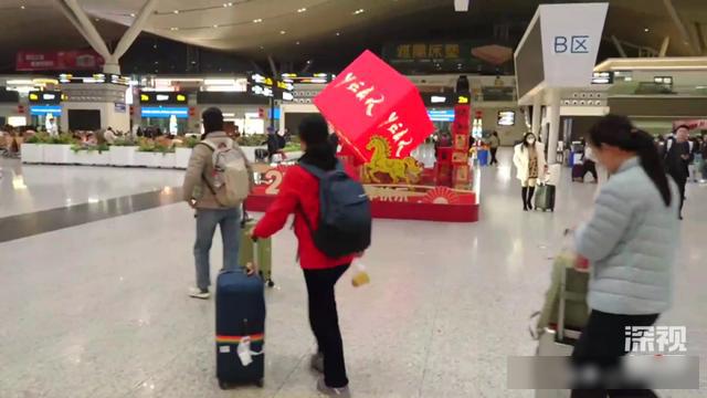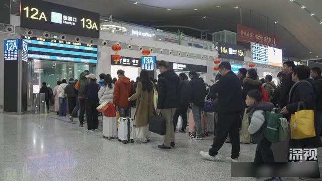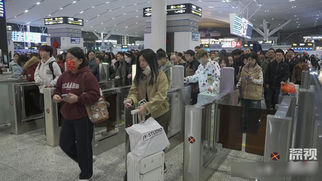 深视新闻记者在现场看到,乘客们洋溢着兴奋的心情回家过年,进出站口、安检及候车大厅,队伍都井然有序。
