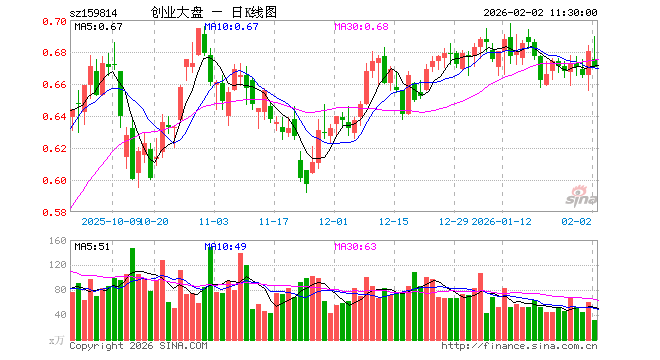 2月2日,截止午间收盘,创业大盘ETF西部利得(159814)跌1.47%,报0.670元,成交额2169.89万元。创业大盘ETF西部利得(159814)重仓股方面,中际旭创截止午盘跌7.24%,宁德时代跌0.06%,新易盛涨4.89%,东方财富涨0.31%,阳光电源跌0.06%,胜宏科技涨2.02%,汇川技术涨1.63%,迈瑞医疗跌0.01%,天孚通信跌4.22%,亿纬锂能跌0.14%。