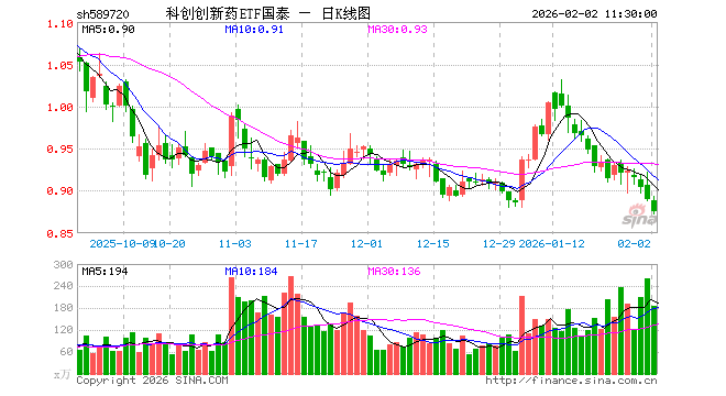 2月2日,截止午间收盘,科创创新药ETF国泰(589720)跌1.69%,报0.875元,成交额1.65亿元。科创创新药ETF国泰(589720)重仓股方面,百济神州截止午盘跌1.08%,艾力斯跌1.63%,百利天恒跌1.43%,君实生物跌2.17%,泽璟制药跌1.82%,博瑞医药跌1.62%,荣昌生物跌2.41%,特宝生物涨0.03%,益方生物跌7.63%,皓元医药跌4.67%。