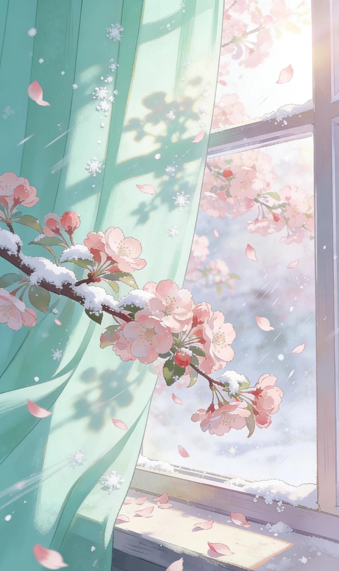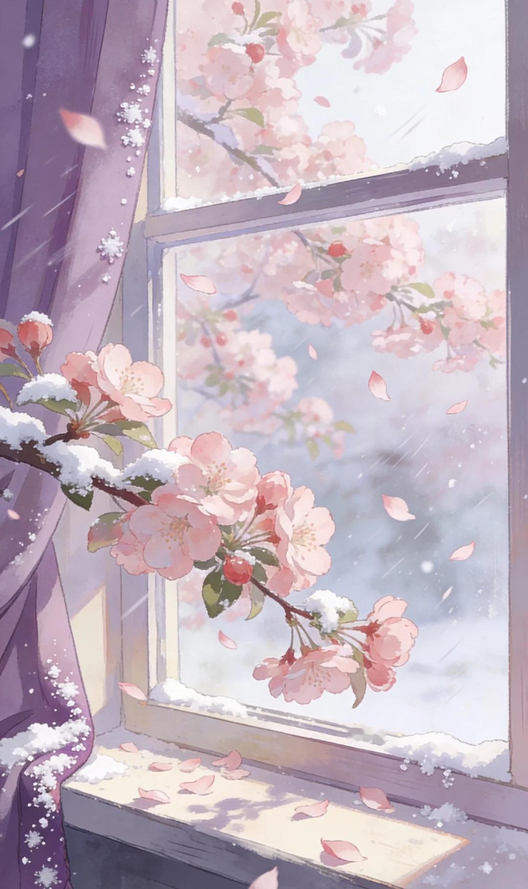 这样的雪,这样的花,这样的窗~❄️🌸 雪一落就美成了诗 冬天的雪花