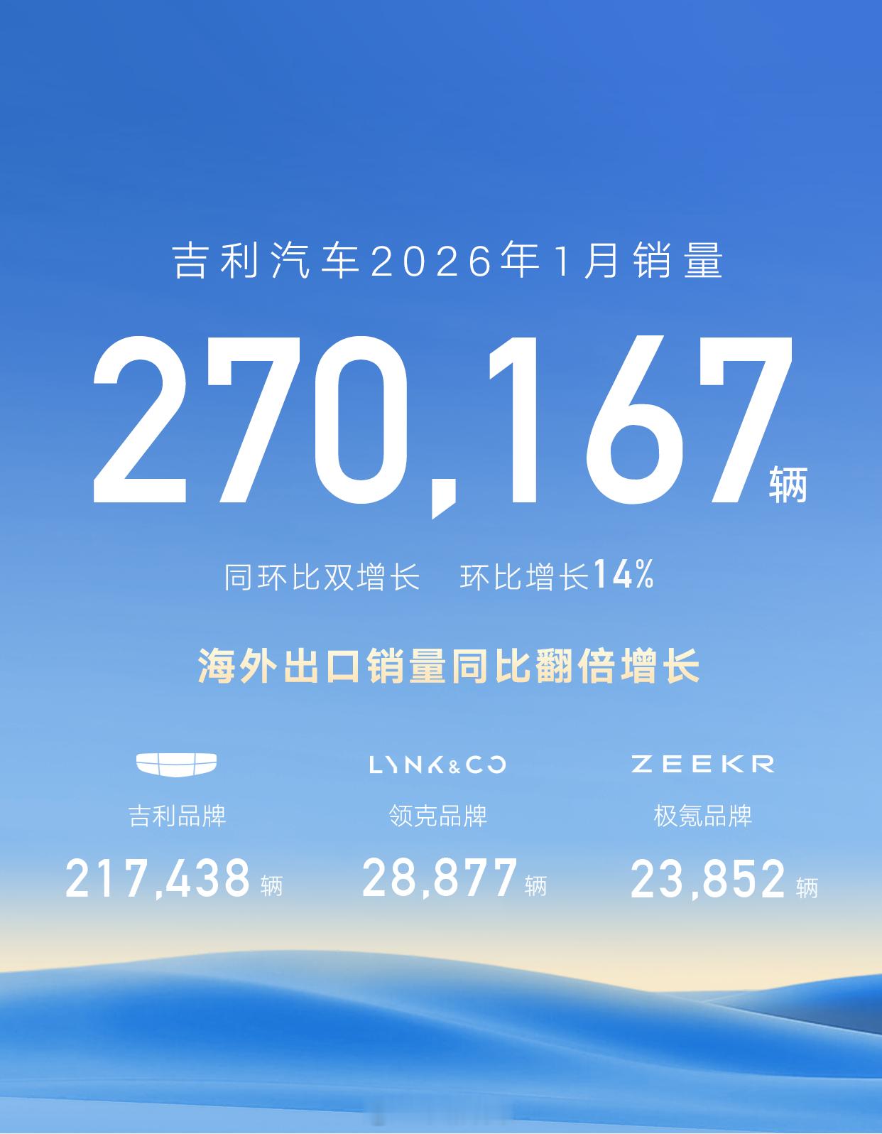 吉利汽车开门红,销量反超比亚迪!1 月销量 27 万辆,同环比双增长,新能源销量