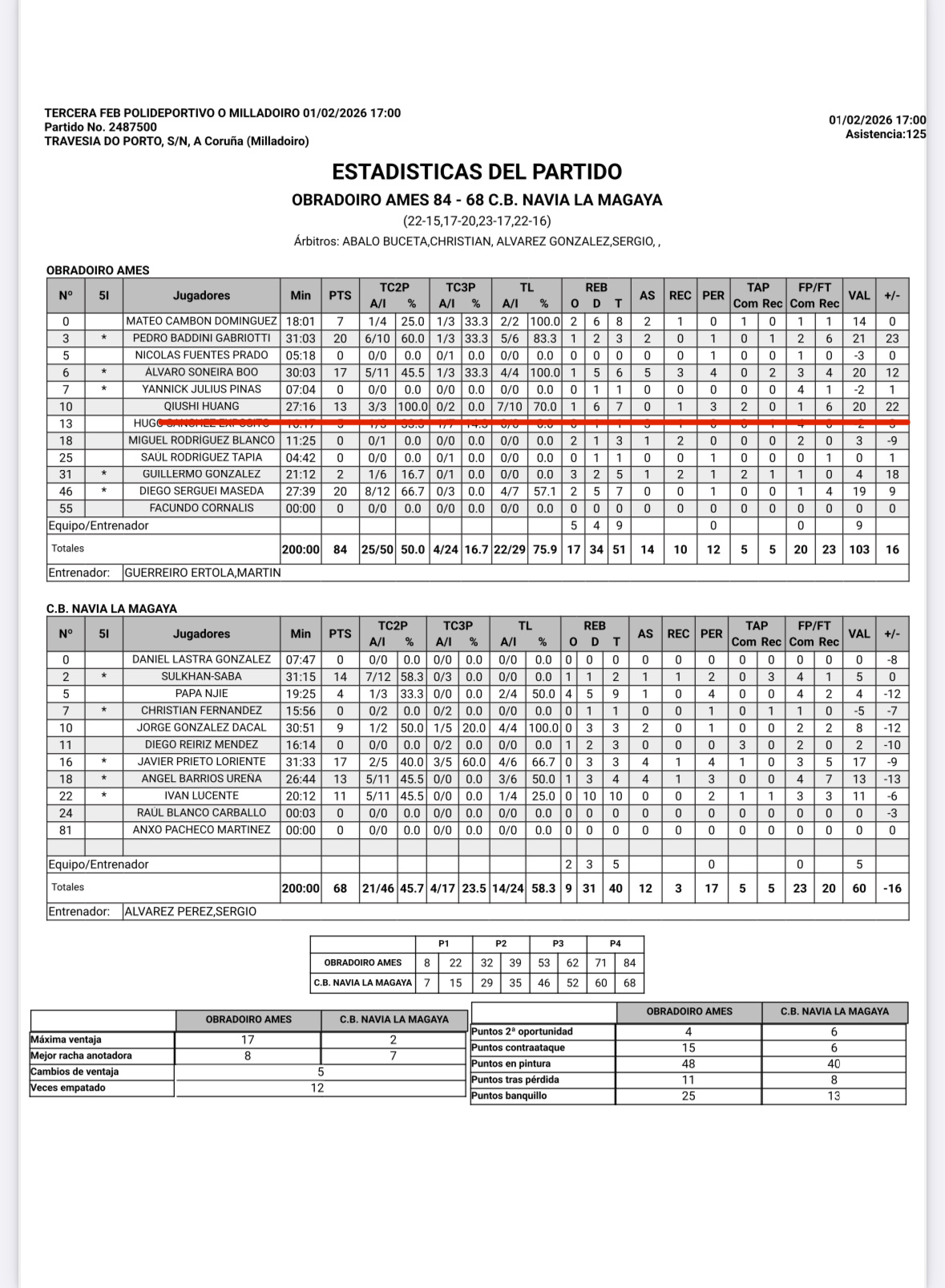 2026年张峻豪和黄秋实西丁第四战俩位各自球队都赢球了张峻豪上场10分44秒6中