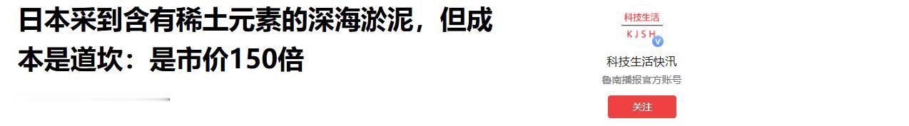 日本深海捞出“稀土泥”,政客嗨翻了天,小林鹰之的算盘打得明明白白 当地时间2月,自民党高层小林鹰之兴奋地发文庆贺,说是从6000米深海捞出了宝贝。但这真的是日本工业的救命稻草,还是一场自欺欺人的政治作秀? 事情还得从1月底说起。日本“地球”号的勘探船,在南鸟岛附近海域折腾了十几天。到了1月31日,终于有了动静。 据《日经新闻》报道,日本人这次从6000米深的海底,把“稀土泥”给捞上来了。专家一鉴定,确实含有稀土元素。 这下可把自民党政务调查会长小林鹰之高兴坏了。2月2日一大早,他就在社交媒体上高呼这是“迈出重要一步”,还要搞“大胆投资”来实现“自主性”。 看着日本政客这副欢天喜地的样子,不知道的还以为日本明天就能实现稀土自由了。 首先得搞清楚概念,这捞上来的叫“稀土泥”,跟工业能用的“稀土”完全是两码事。 从深海泥巴到高纯度稀土,中间横亘着巨大的技术鸿沟。批量打捞、泥水分离、元素提纯、工业量产,这四大关卡,日本现在一关都没过。 更重要的是成本。6000米深海是什么概念?在那下面搞工业化打捞,难度不亚于去月球挖土。 就算日本技术真能突破,这开采成本也得是个天文数字。到时候挖出来的稀土,价格恐怕比金子还贵,哪家企业用得起? 所以,商业价值基本为零。这种不计成本的投入,除了满足一下政客的虚荣心,在经济账上根本算不过来。 既然经济上划不来,那小林鹰之为什么还要大张旗鼓地宣传?说白了,这就是一场精心设计的政治表演。 日本现在的处境很尴尬。作为半导体和汽车制造强国,核心资源的命门却捏在别人手里。 特别是到了2026年,全球地缘博弈更加激烈,供应链的任何风吹草动都能让日本神经紧绷。 这时候,搞出点“深海寻宝”的动静,就能给民众打一剂强心针。小林鹰之嘴里的“提升自主性”,听着热血沸腾,实则是画饼充饥。 他呼吁的“大胆投资”,无非是想用纳税人的钱,去填这个深海勘探的无底洞。 目的就是为了证明自民党的战略是正确的,紧接着就能在政治博弈中捞取资本。 至于这稀土到底能不能用,那是十年甚至二十年后的事,反正现在的政客不需要为此负责。 我们要看到,日本制造业面临的是“近渴”,而深海稀土是名副其实的“远水”。 日本的汽车、半导体产业现在停摆,急需稳定的供应链支持。指望这还在试验阶段的深海泥巴来救急? 等到这技术真正成熟那天,黄花菜都凉了。日本引以为傲的制造业体系,恐怕早就因为资源短缺而崩塌了。 这种时间上的完全错位,日本政客心里比谁都清楚。但他们依然选择装傻,因为他们需要的不是解决问题,而是选票。 通过炒作“资源独立”的概念,来忽悠中间选民,展示所谓的强硬姿态,这才是小林鹰之发文庆贺的真实动机。 日本如果真想解决资源困境,靠这种奇幻构想是行不通的。 与其在6000米深海做着“资源大国”的白日梦,不如脚踏实地去改善地缘关系,寻找切实可行的合作路径。 但很遗憾,在当下的日本政坛,理性的声音往往被这种喧嚣的政治操弄所淹没。小林鹰之的高兴,恐怕只是一时的自嗨,留给日本经济的,依然是那个难解的死结。