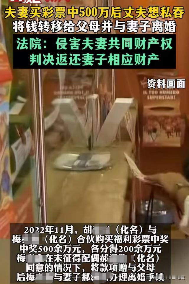 宁夏石嘴山,男子和朋友合伙买彩票,意外中了500万大奖,男子想独吞这笔钱,背着老婆偷偷将钱赠予给父母,然后和妻子离了婚。前妻听说了这件事,起诉男子要求返还她的那一部分,男子又和朋友合谋,搞了一个虚假的借贷,想少分给前妻一点,没想到搬起石头砸了自己的脚。 据大风新闻报道,胡某和梅某是好得能穿一条裤子的铁哥们,2022年11月,两人一起买了一张彩票,谁知道走了狗屎运,竟然一下中了500多万的大奖。 胡某和梅某高兴坏了,两个人缴了税,一人还分到了200多万。 梅某拿到钱后,原本想第一时间将好消息告诉家人,可转念一想不对,他早就看老婆郝某不顺眼了,只是当初没钱,跟她分开了就找不到老婆了,这才一直忍耐。 现在自己有钱了,还愁没有漂亮小姑娘往跟前凑吗?不如趁此机会将郝某踹了,再找个年轻漂亮的! 梅某盘算了一下,只将这个消息告诉了父母,然后又写了一份赠予协议,称自愿将这笔钱赠予给他们。 随后,梅某就到处找妻子郝某的茬,天天和她吵架,没多久,两口子如愿离婚了。 离婚后,郝某过得苦哈哈的,却听别人说前夫梅某发了财,现在新车开着,每天出去吃喝玩乐,混得风生水起。 郝某非常不解,和梅某过了这么多年,他什么水平自己还不清楚吗?他怎么可能突然发财了呢? 经过郝某不停打听,这才知道,在他们还没离婚的时候,梅某就中了大奖。 郝某气愤不已,怪不得梅某那段时间经常找她的事,怪不得他突然对自己态度大变,原来是一早就计划好了的! 郝某搜集好证据,直接将梅某起诉了,要求确认他对父母的赠予行为无效,并要求分得自己应得的那部分。 经审理认为,梅某中奖是在他和郝某婚姻关系存续期间。 依据《民法典》规定,夫妻在婚姻关系存续期间所得的财产,归夫妻共同所有,对于夫妻共同财产,一方不能单独决定将大额财产赠予他人。 梅某彩票中奖所得属于夫妻共同财产,梅某和郝某对这200多万奖金都享有平等的处理权,梅某未经过郝某同意,擅自将钱赠予给父母,侵犯了作为妻子的郝某的财产权益。 梅某的主观意图是为了独吞奖金并与郝某离婚,这种行为属于恶意转移夫妻共同财产,所以梅某的赠予行为无效。 最终,一审判梅某返还郝某应得的那一份。 判决下来后,梅某还是不想将钱分给郝某,又提起了上诉。 并且,梅某又找到了好哥们胡某,两人一商议,想出了一个办法,帮梅某保住财产。 原来,胡某曾经转账给了梅某很大一笔钱,两人合谋炮制了一个虚假的借款,编造这笔钱是梅某向胡某借的,从而达到稀释债务的目的。 胡某立即起诉梅某,要求他偿还这笔不存在的债务。 然而,让两人不知道的是,他们认为天衣无缝的计谋,在承办法官的面前却漏洞百出。 在审查材料时,工作人员发现,胡某声称借给梅某一笔钱,但两人之间只有转账记录,没有借贷合意,也没有借据、合同等证据佐证,最可疑的是,这件案子直接关联到了郝某那件赠与案。 于是,他们再次仔细询问胡某当初借贷的细节,并向他普法,根据《刑法》第三百零七条规定,以捏造的事实提起民事诉讼,妨害司法秩序或者严重侵害他人合法权益的,构成虚假诉讼罪。 工作人员告诉胡某,如果他和梅某合谋,编造根本不存在的借款事实,这就是妥妥地用捏造的事实提起民事诉讼。 胡某一听,捏造事实虚假诉讼,轻的可能受到行政处罚,重的可能会构成刑事犯罪判刑,顿时就吓到了。 胡某心神一乱,话中的漏洞越来越多,最后只好承认了和梅某串通虚构债务的事,并主动承认了错误,还手写了一份认错书,撤销了诉讼申请。 因为诉讼还未真的进入程序,胡某的违法行为不算严重,最终免于处罚。 梅某试图通过虚假诉讼的方式稀释债务,根据《民法典》第一千零九十二条规定,夫妻一方隐藏、转移、变卖、毁损、挥霍夫妻共同财产,或者伪造夫妻共同债务企图侵占另一方财产的,在离婚分割夫妻共同财产时,对该方可以少分或者不分。离婚后,另一方发现有上述行为的,可以向人民法院提起诉讼,请求再次分割夫妻共同财产。 梅某的前妻郝某完全可以以梅某转移财产、伪造夫妻共同债务侵占另一方财产为由,要求梅某少分或者不分。 法律面前容不得耍心眼,任何妄图通过违法手段谋取私利的人,都逃不过法律的制裁!