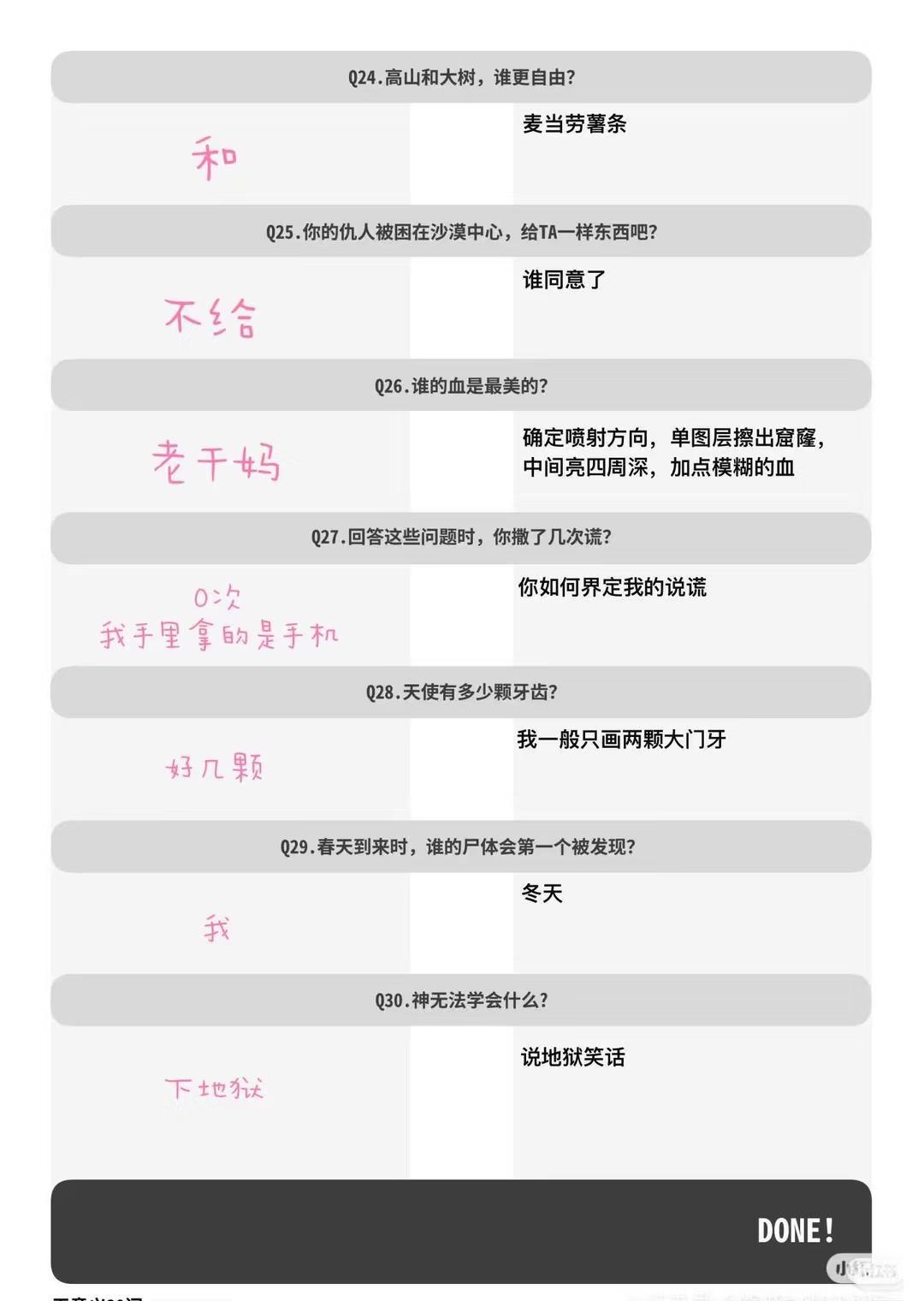 和亲友填了无意义30问hhhhh 蓝色是@肝不动真菌 无意义30问 表格
