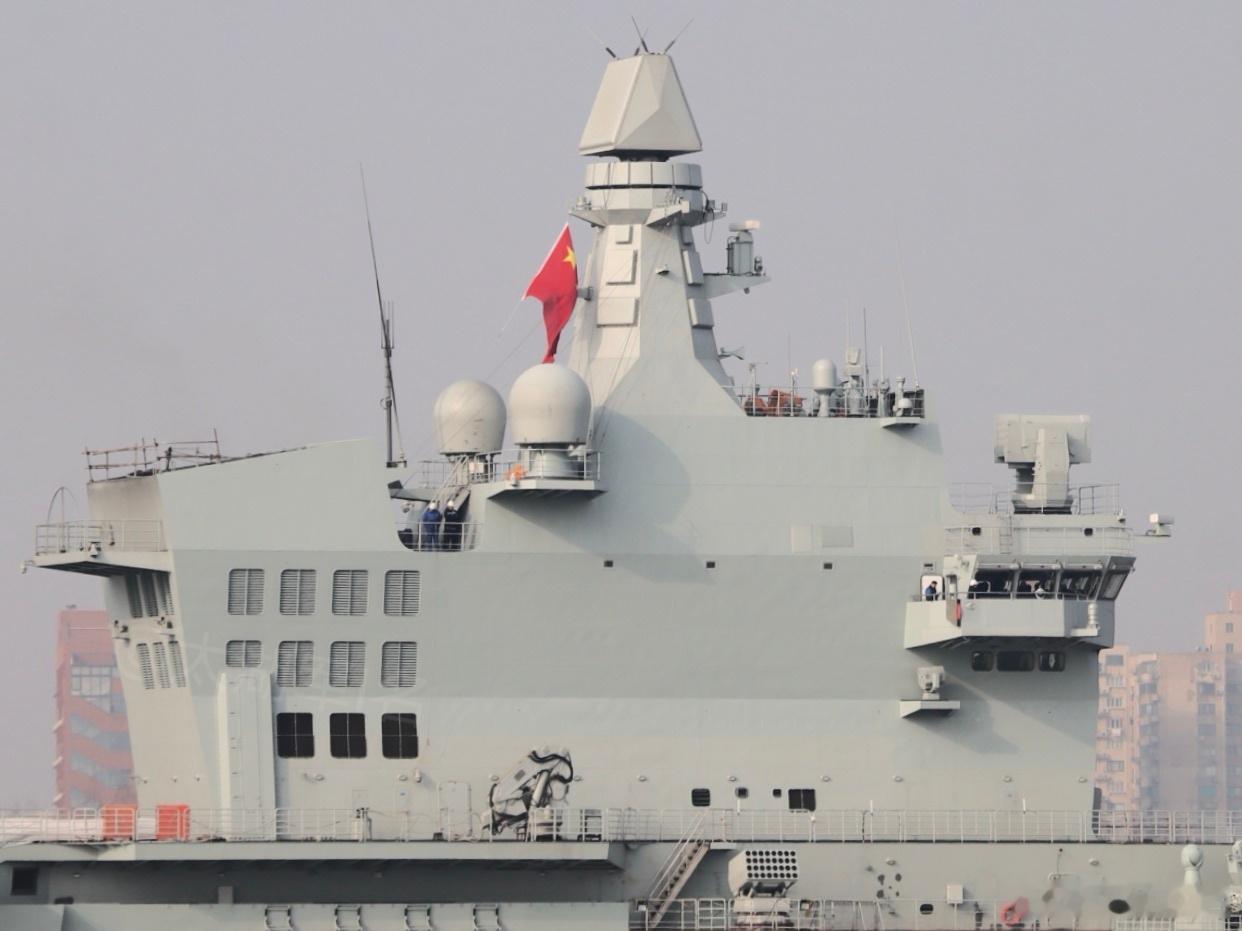 进机库了根据机翼折叠形态,这是机模!中国海军076中国海军舰载机烽火问鼎计划