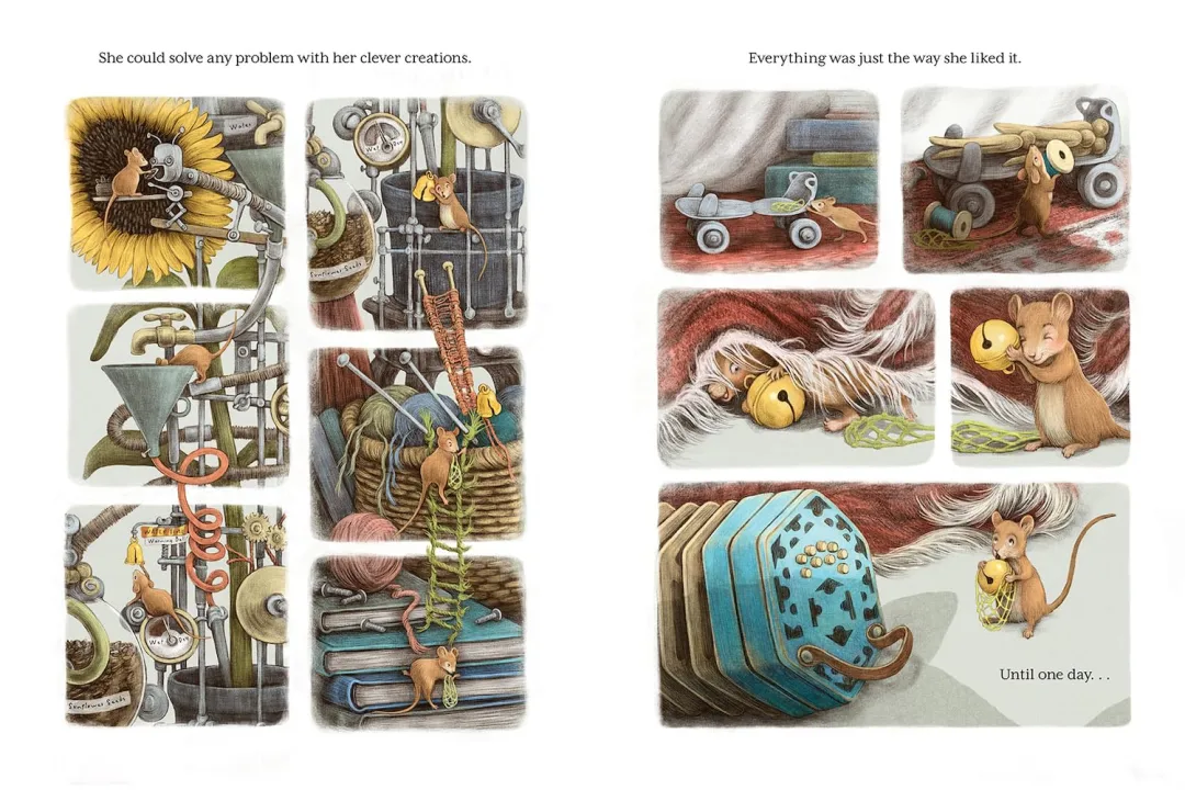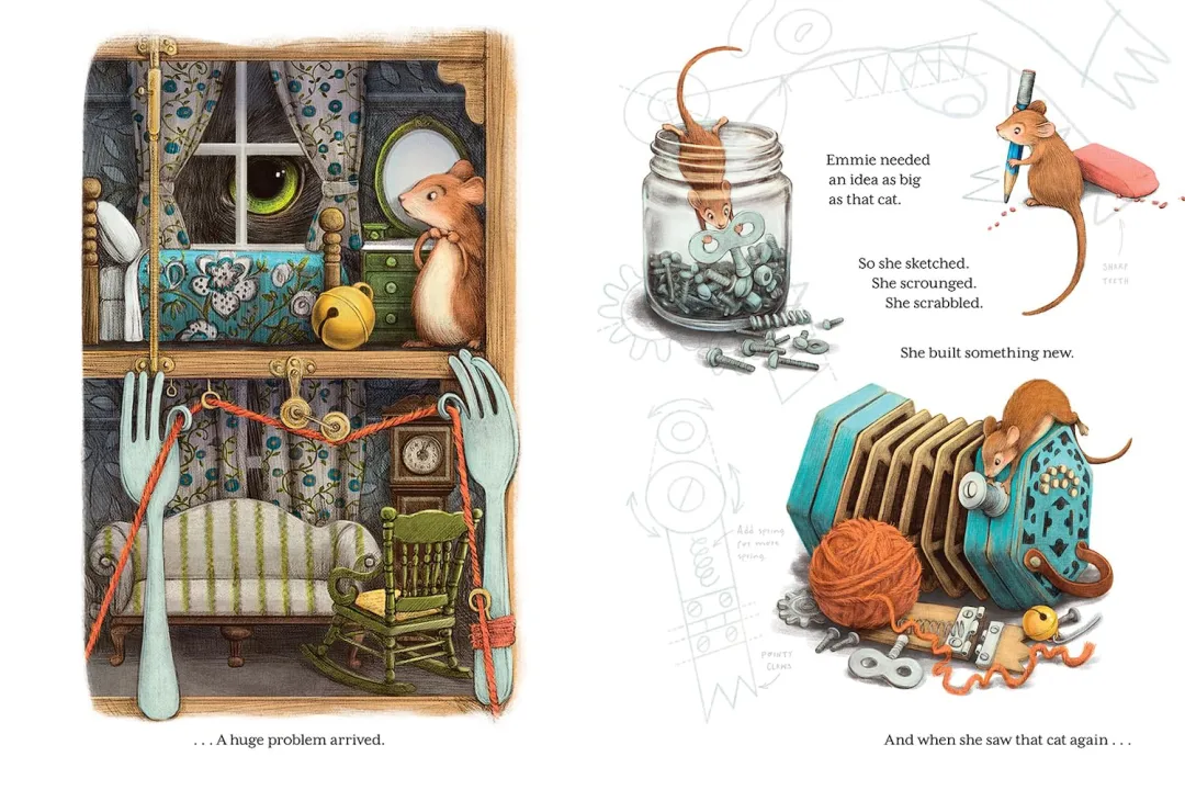在堆满落灰旧物的阁楼里,藏着埃米(Emmie)的专属王国 —— 这里没有寻常的玩具,只有她用创意点亮的 “发明天地”。作为天生的小发明家,埃米总能变废为宝:旧齿轮、破损零件、废弃木板在她手中,会变成自动整理工具的机械、巡视阁楼的简易装置,每一件作品都闪耀着她的工程天赋与奇思妙想。