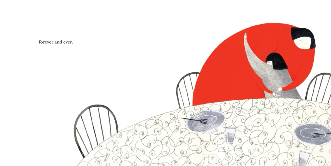 图像简约饶富诗意,无声呈现女孩、母亲、父亲的浓烈羁绊。色彩的转换,巧妙传达双亲对于女孩无尽的关爱,图文诠释溢于言表,读后余韵缭绕不止。